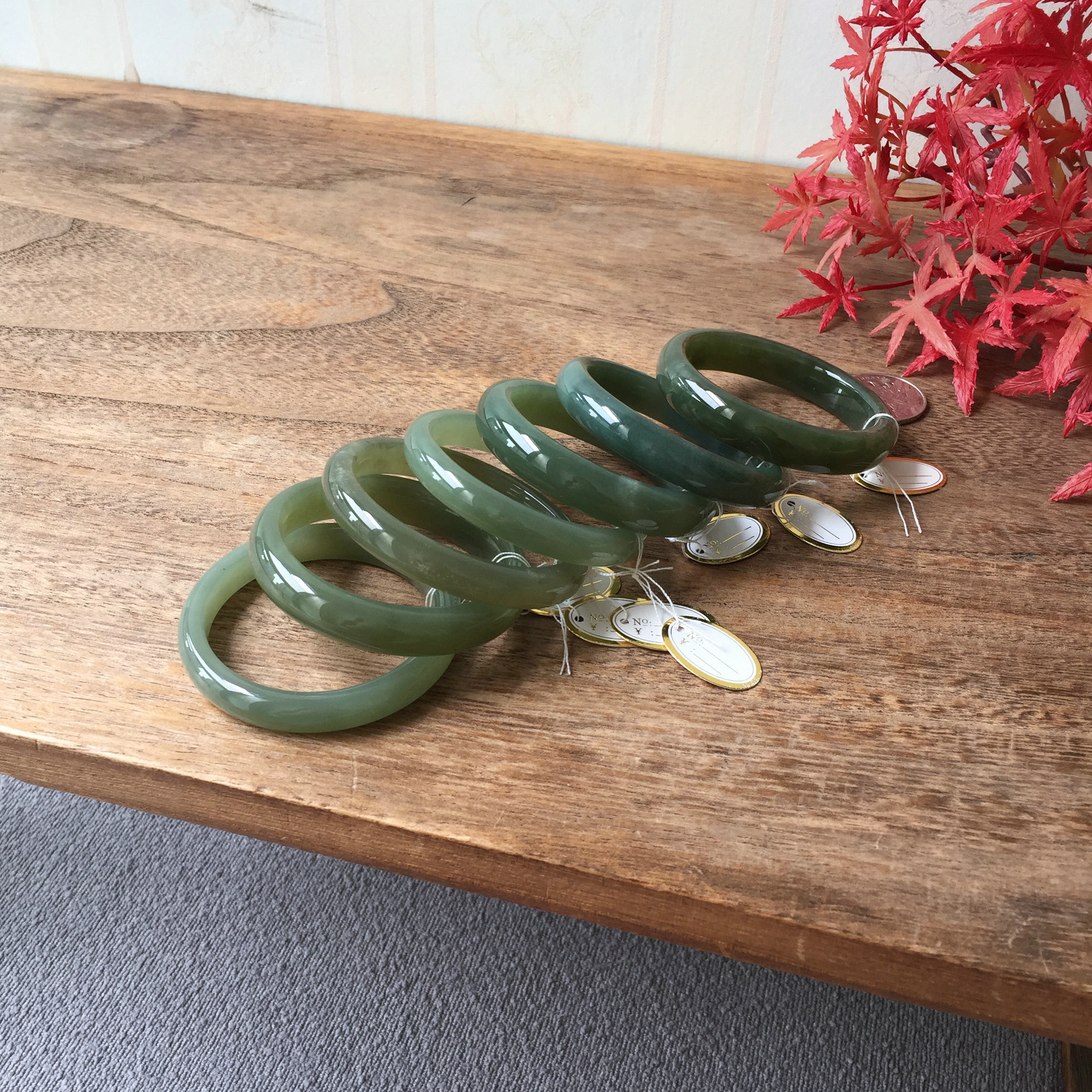 50-58mm小圈口内径天然和田玉青海料手镯 青玉扁条细宽条玉镯女款