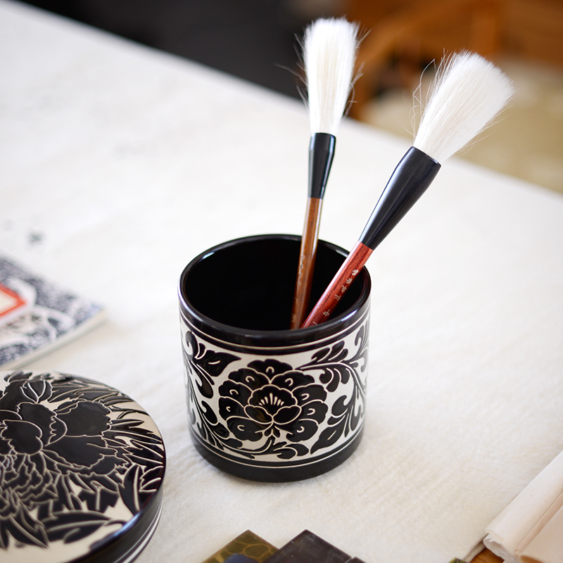 磁州窑收纳毛笔笔筒陶瓷艺术品摆设文房四宝复古笔筒中式创意文具