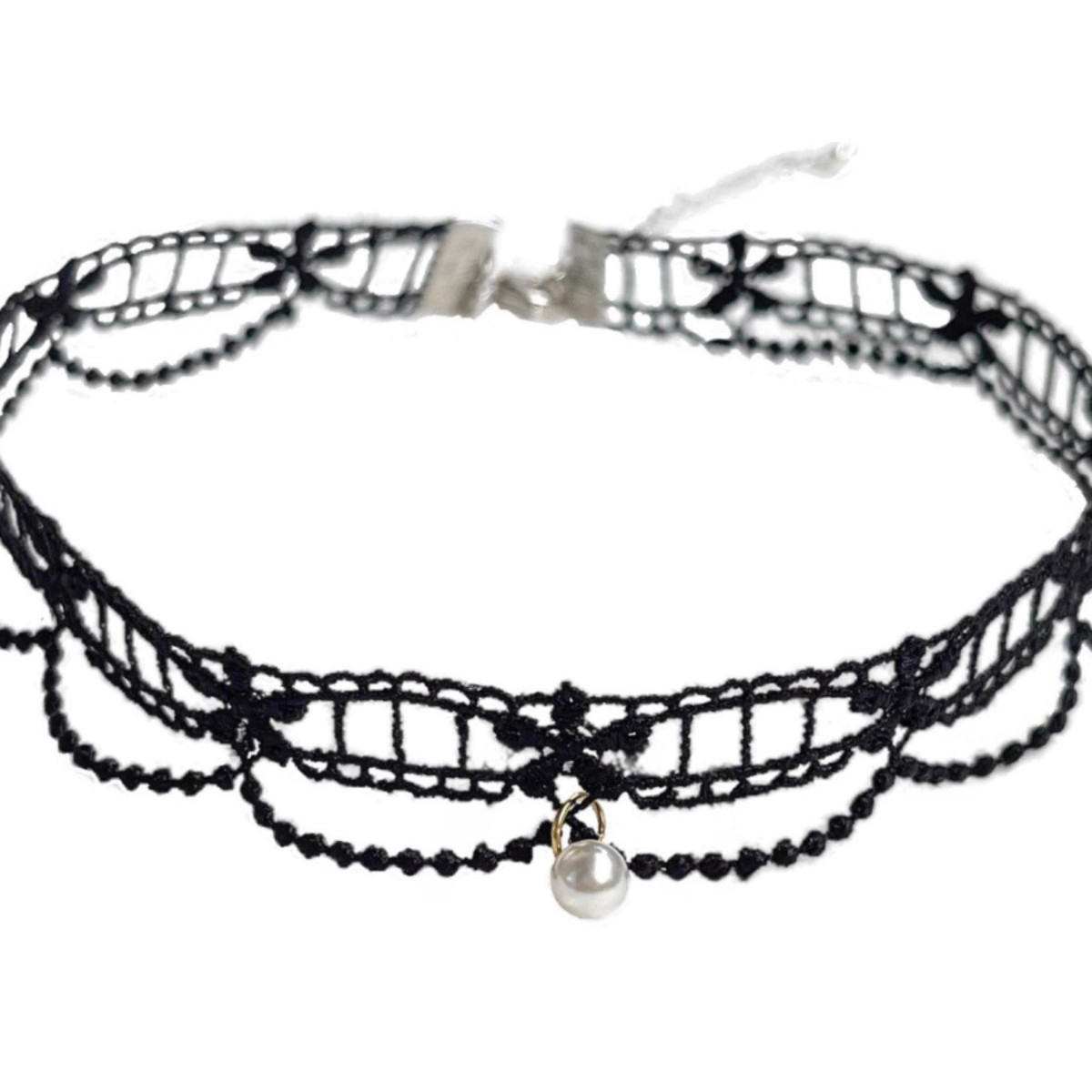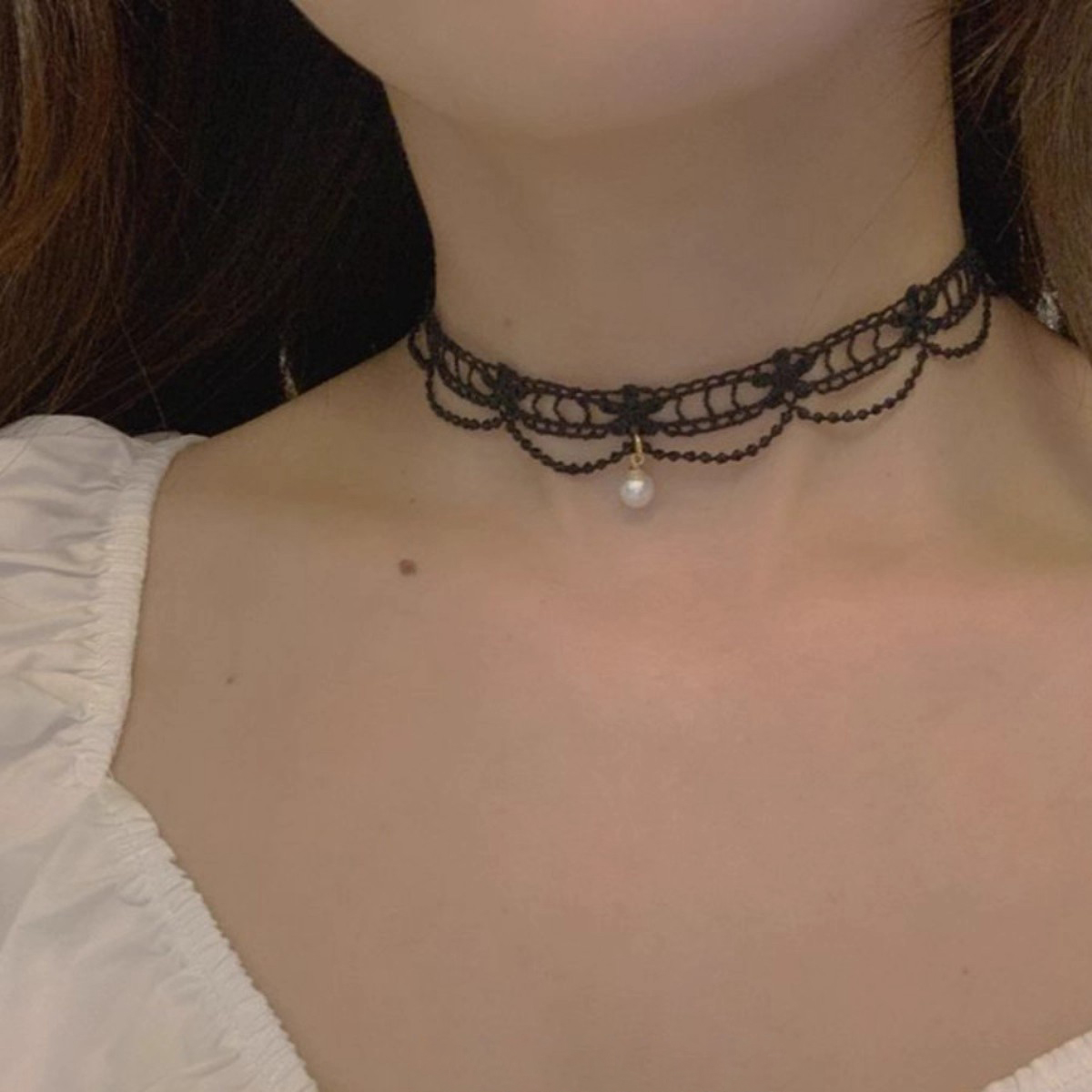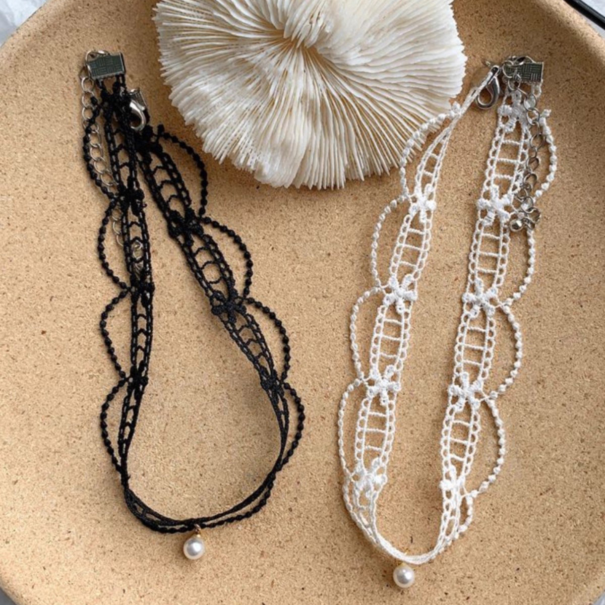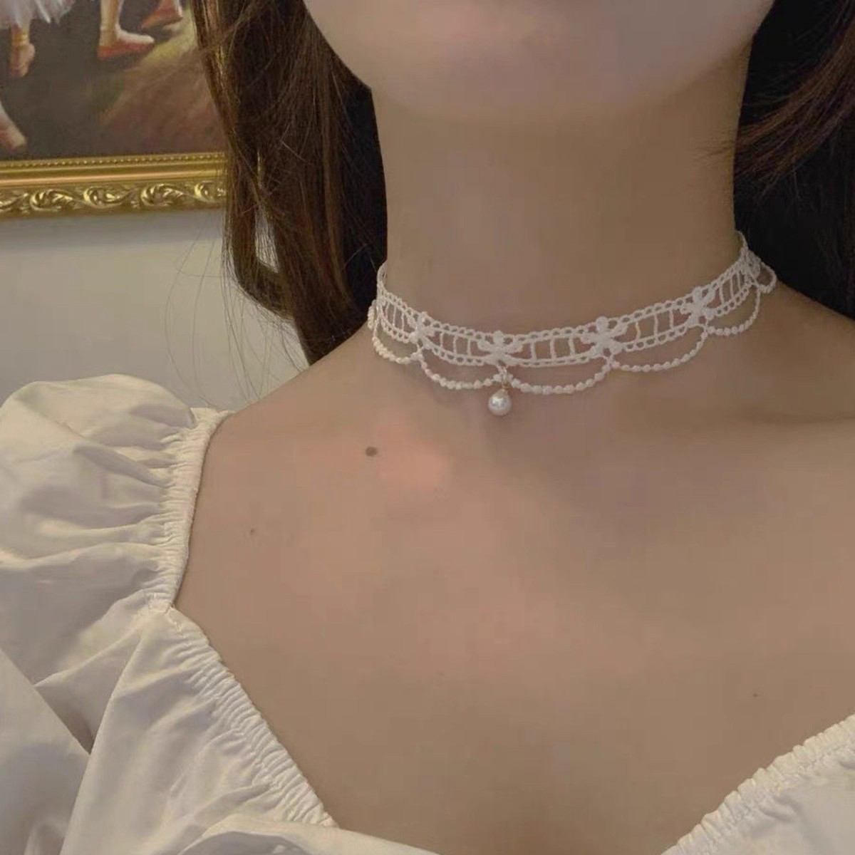 choker项链女白色蕾丝珍珠颈链少女气质项圈颈带超仙锁骨链脖饰