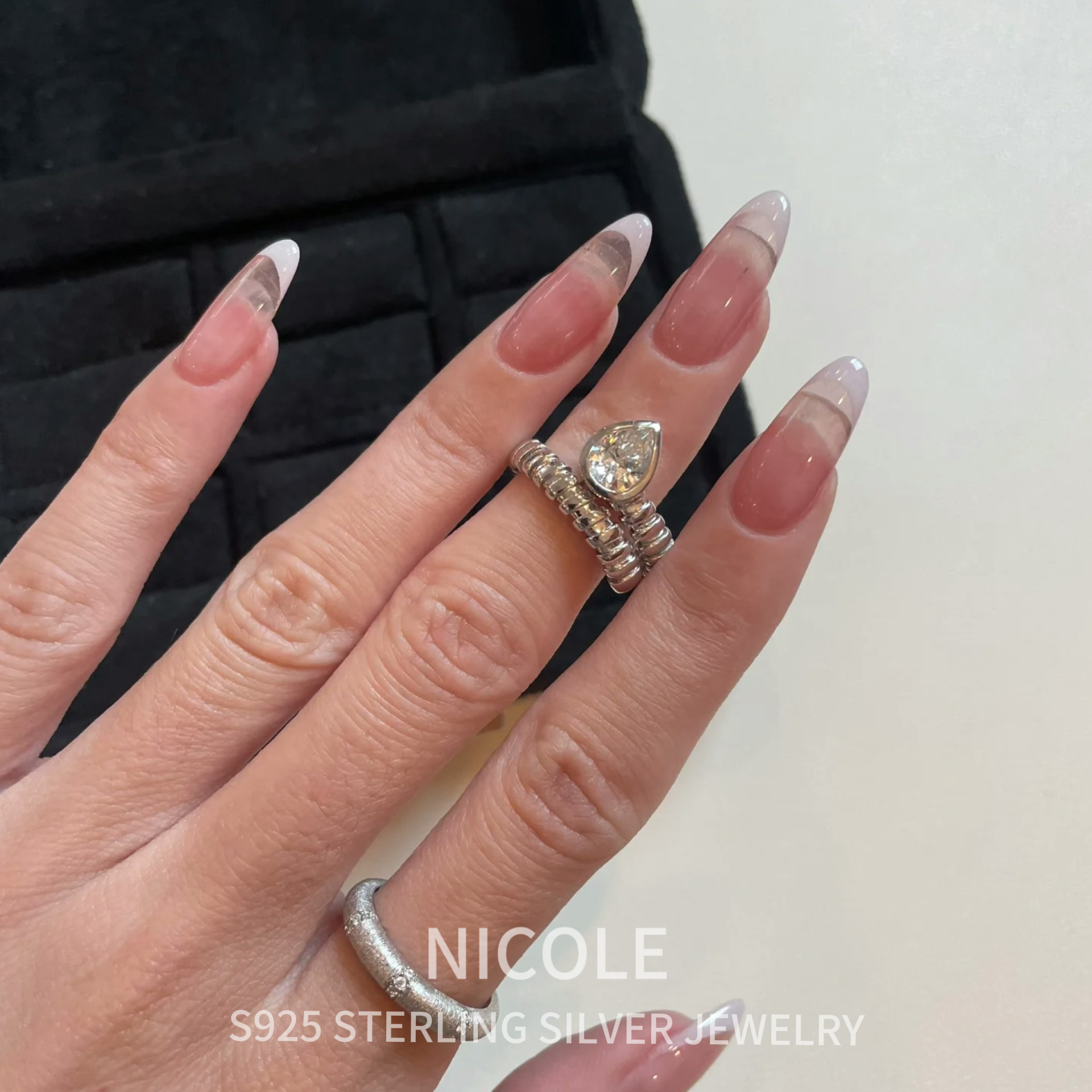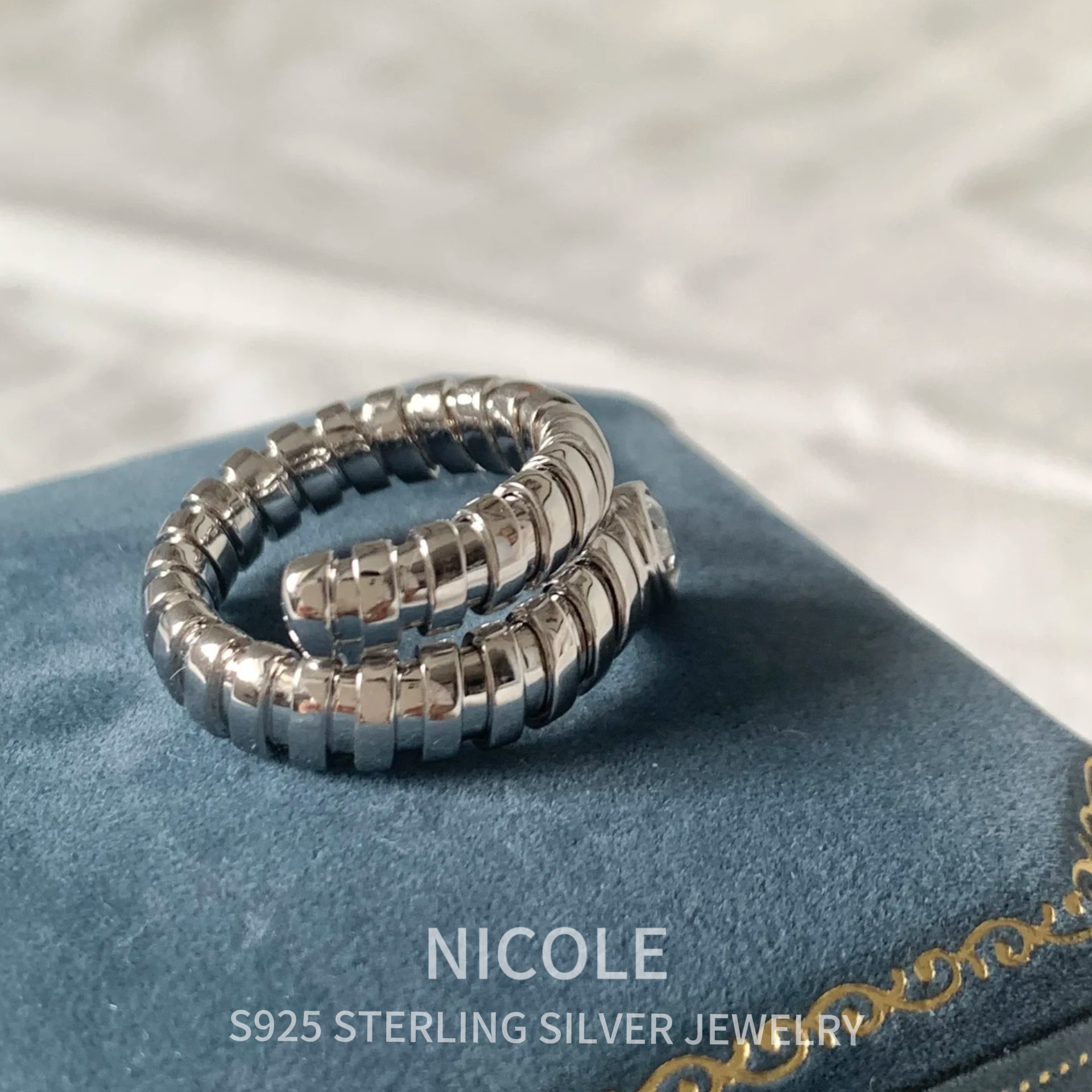 Nicole S925纯银水滴包镶弹簧蛇戒蛇形戒指设计感冷淡风指环