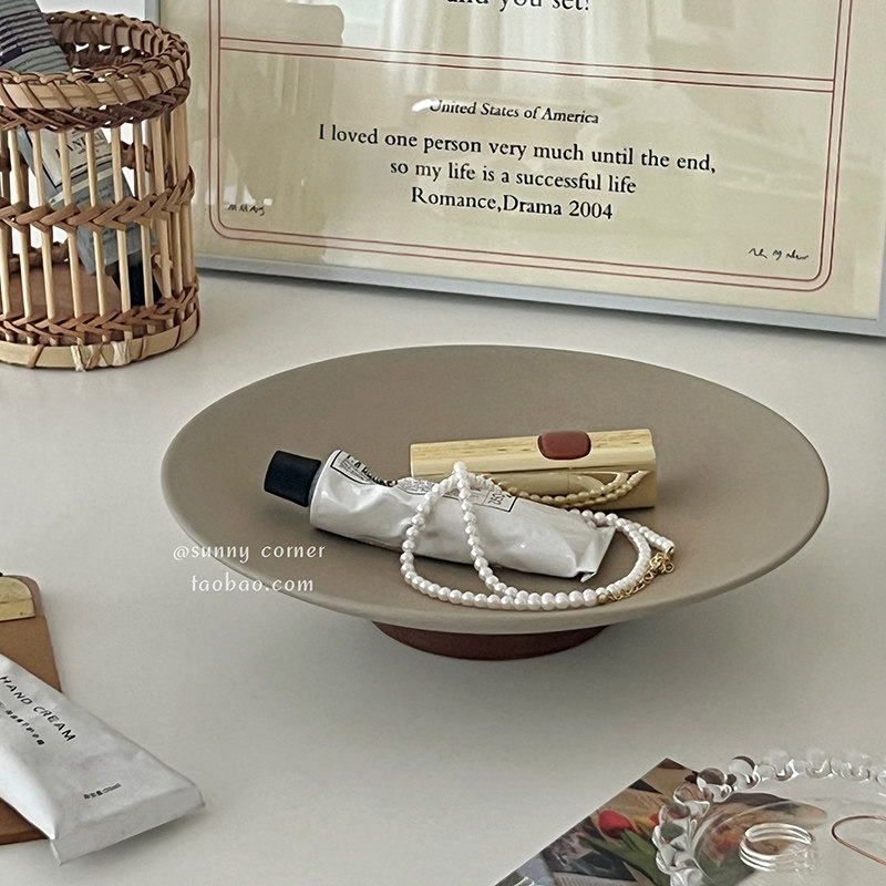 ins风复古陶瓷实木托盘摆件桌面首饰收纳盘玄关钥匙杂物置物盘