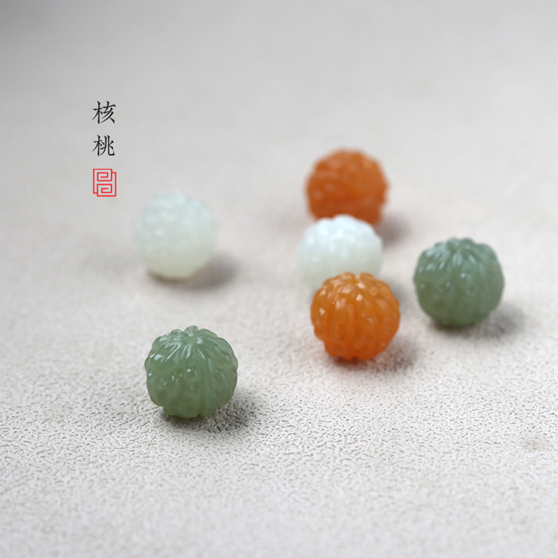 天然和田玉/缅黄核桃配珠 手链项链文玩佛珠配件