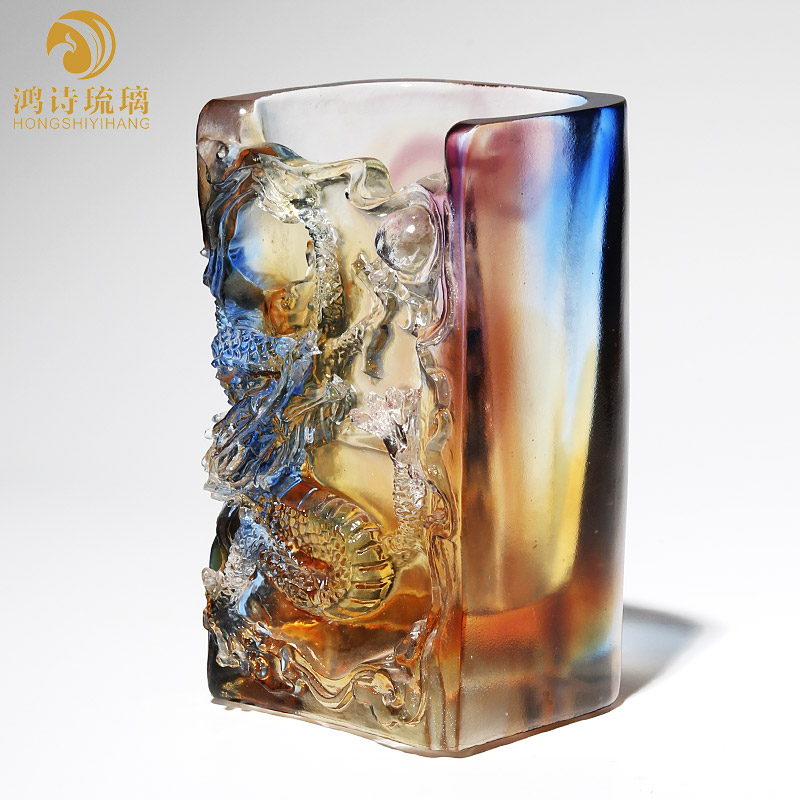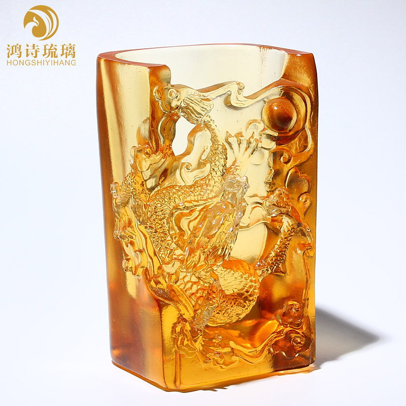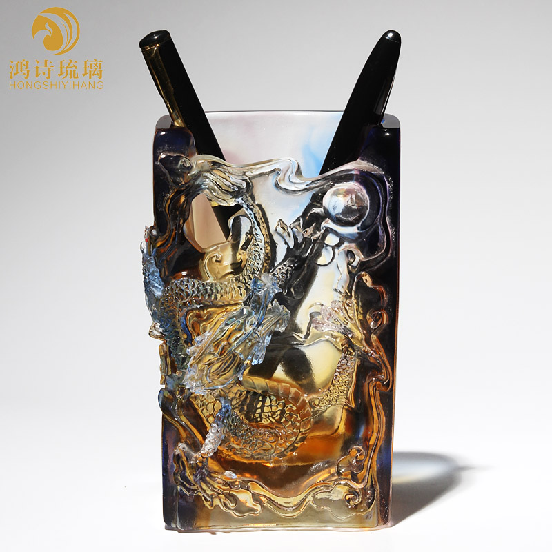 送男领导礼物高档琉璃龙形笔筒时尚桌面摆件