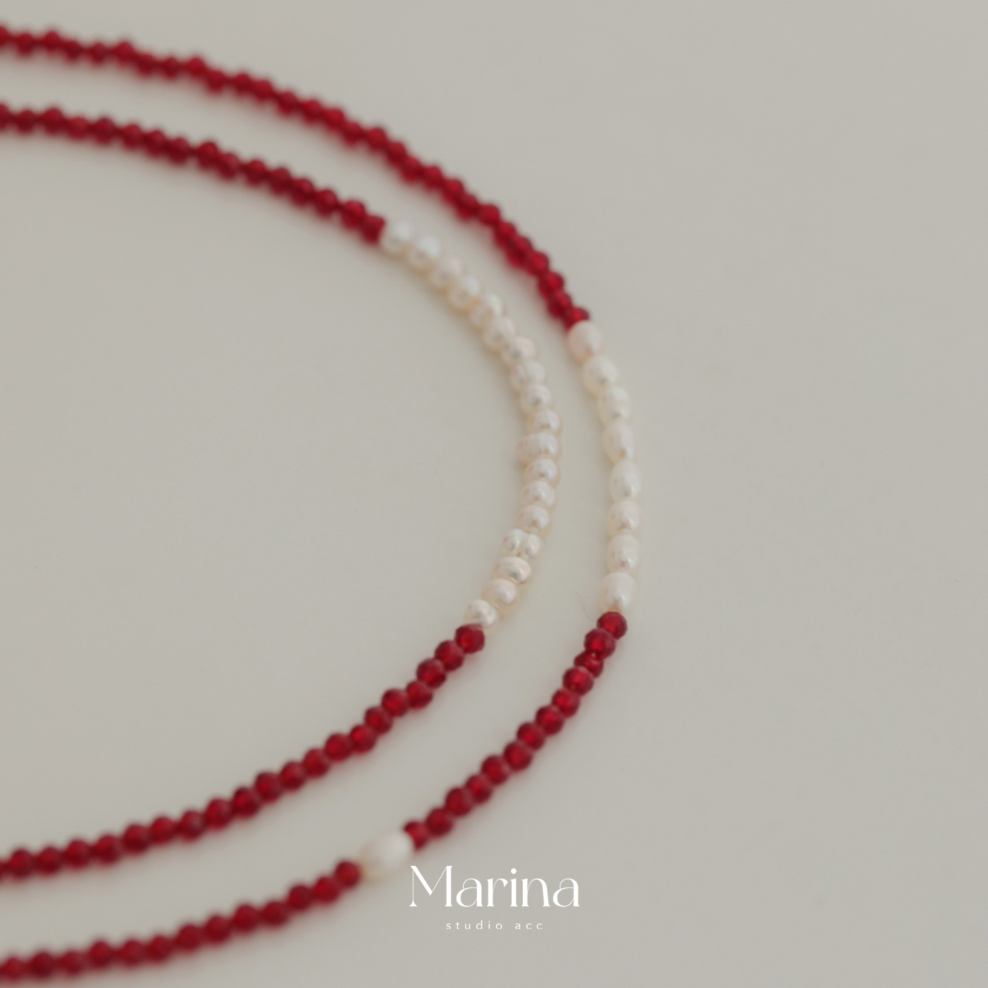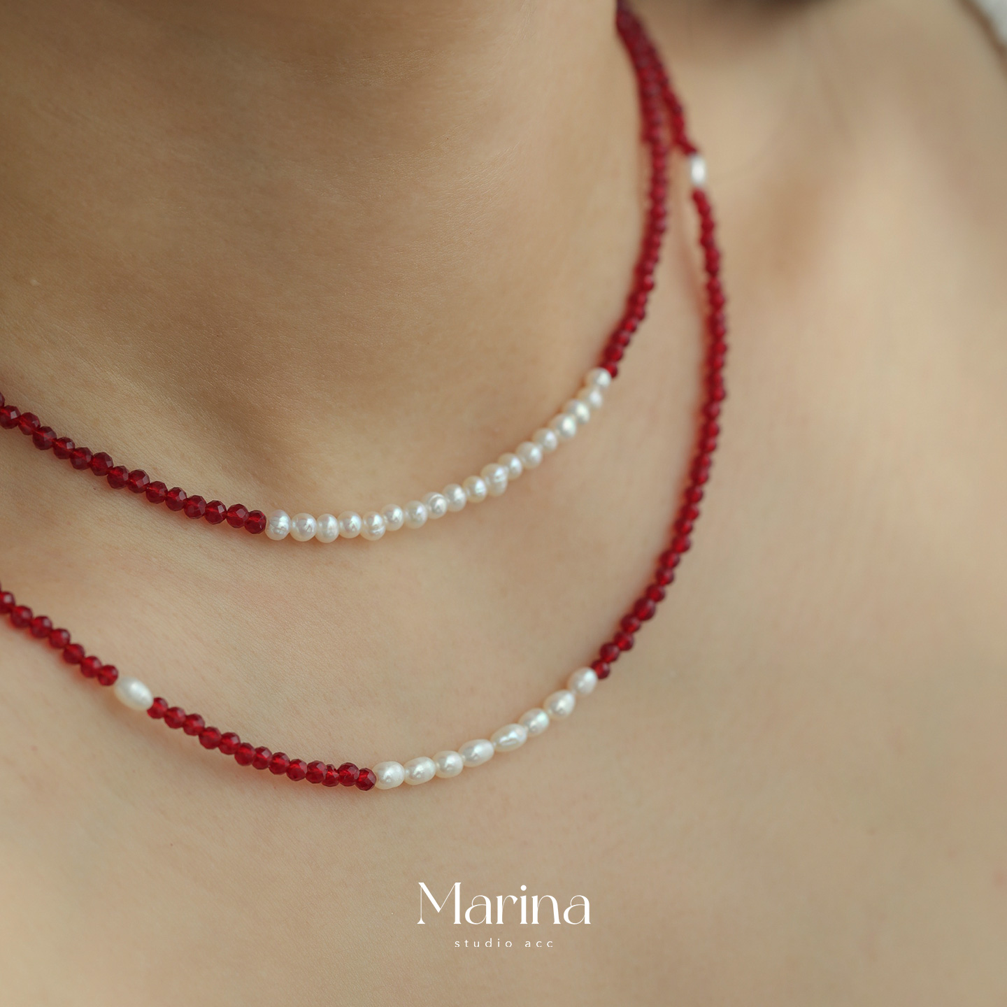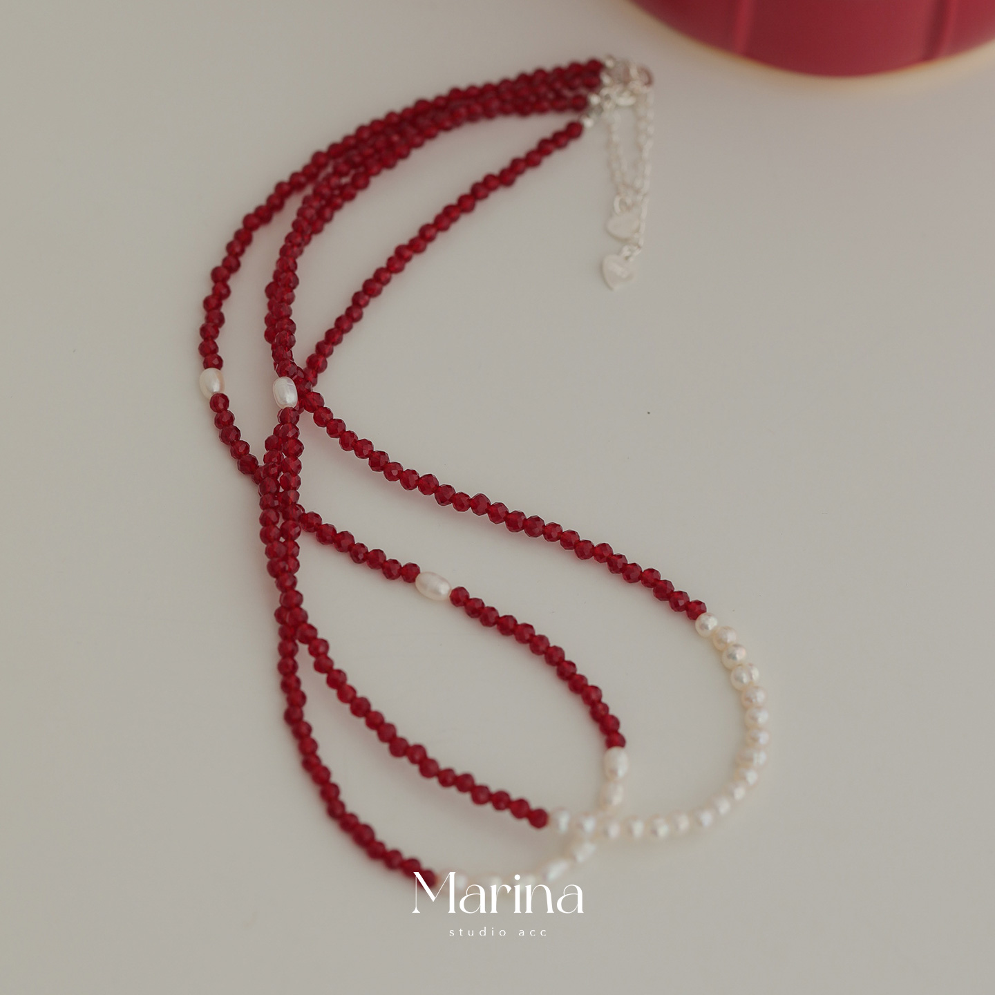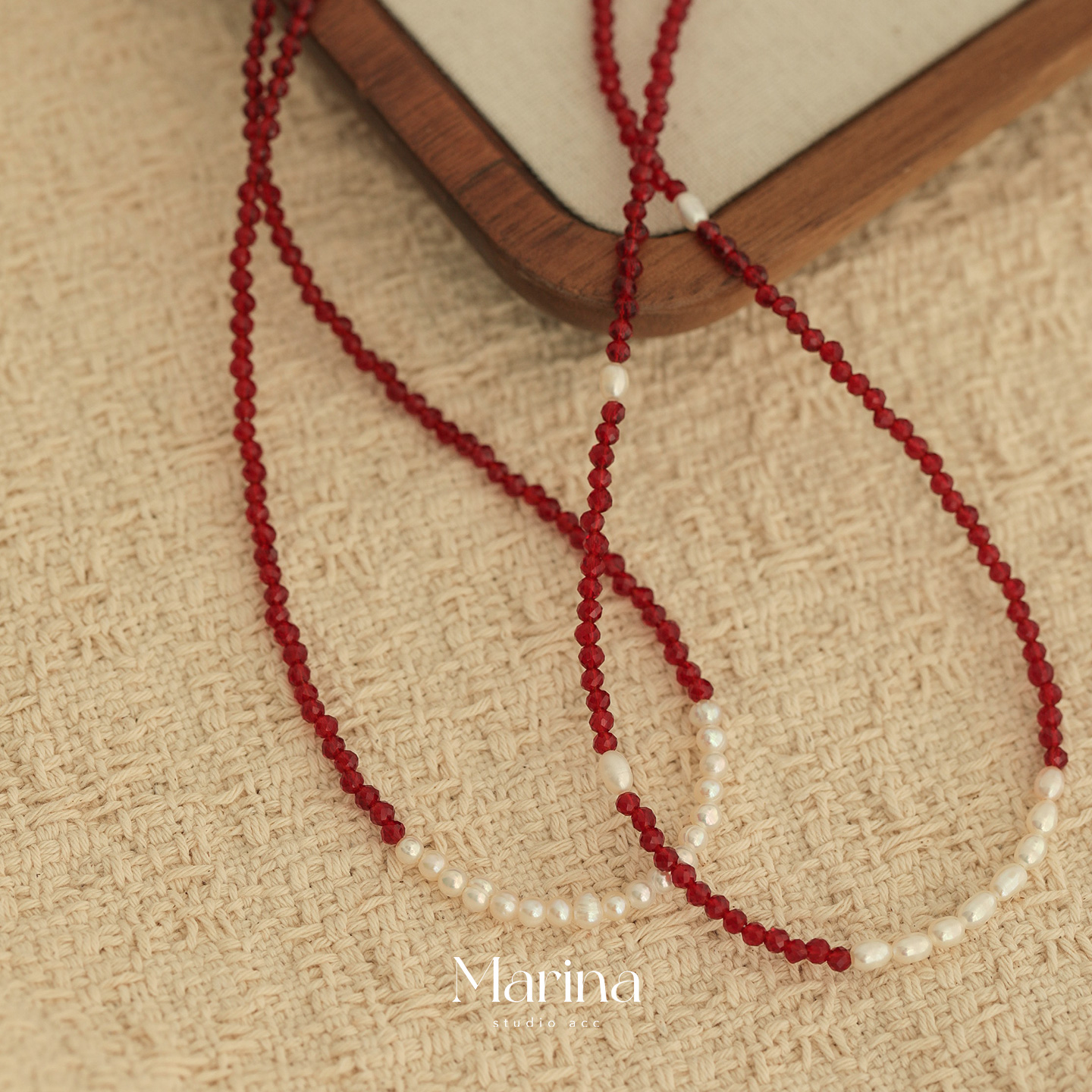 显白温柔系天然红玛瑙淡水珍珠项链 高级感红色小众锁骨颈链925银