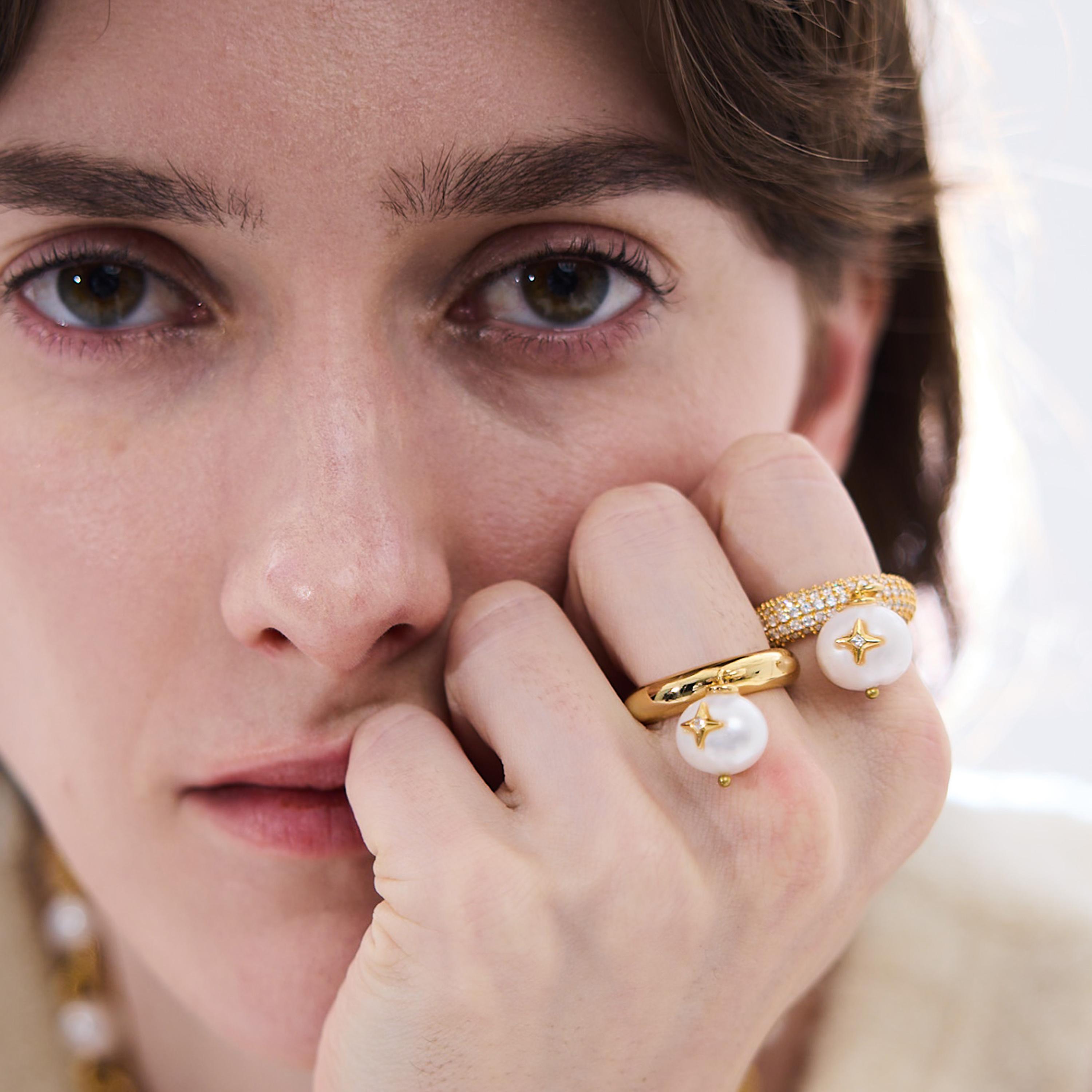 【官方直营】FANGFANGMARCEAU “月光”925银镀白金珍珠闪钻戒指