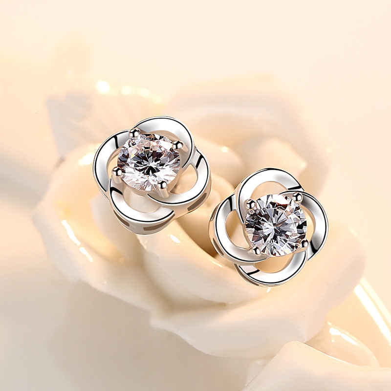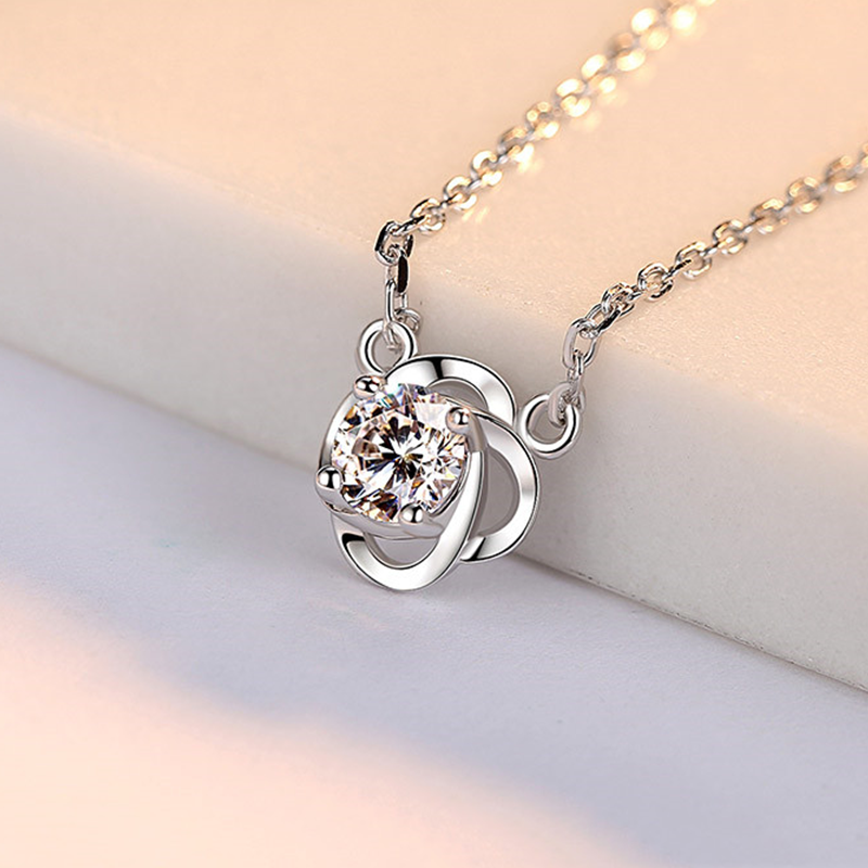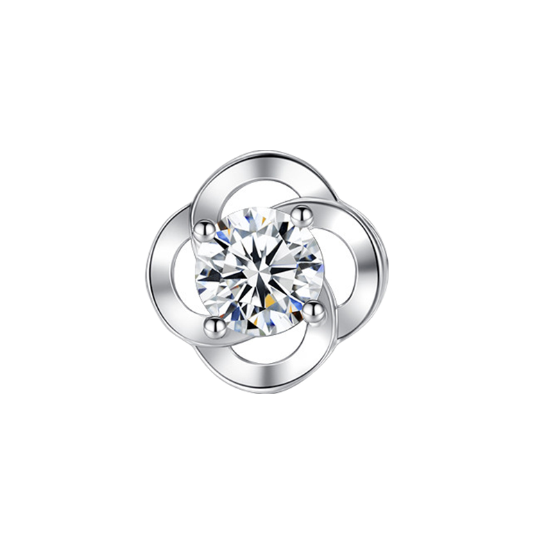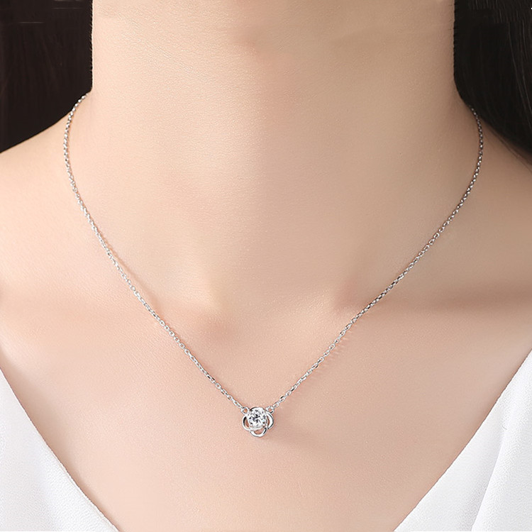 PT950铂金进口D色莫桑钻四叶草单钻项链纯银四瓣花锁骨链耳钉简约