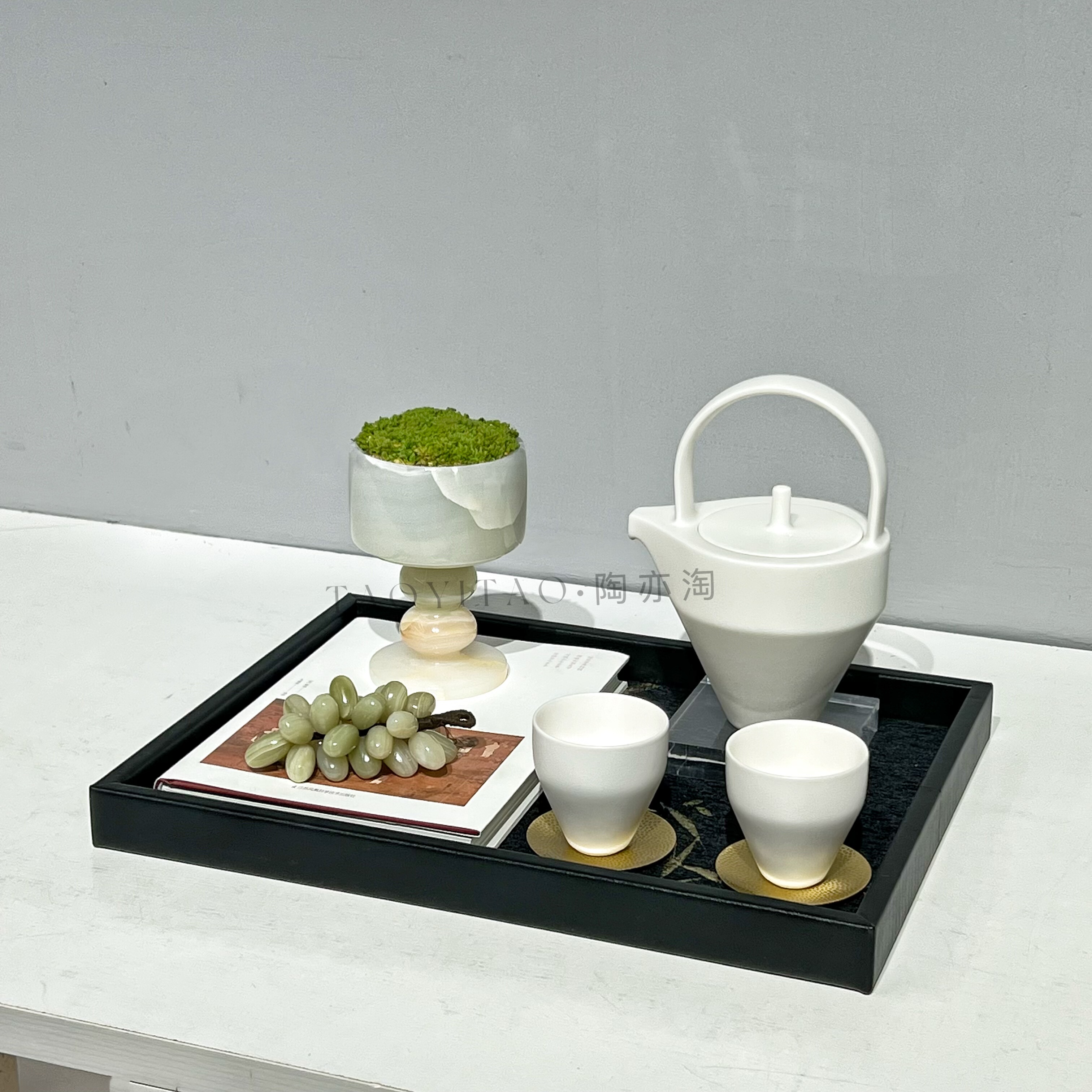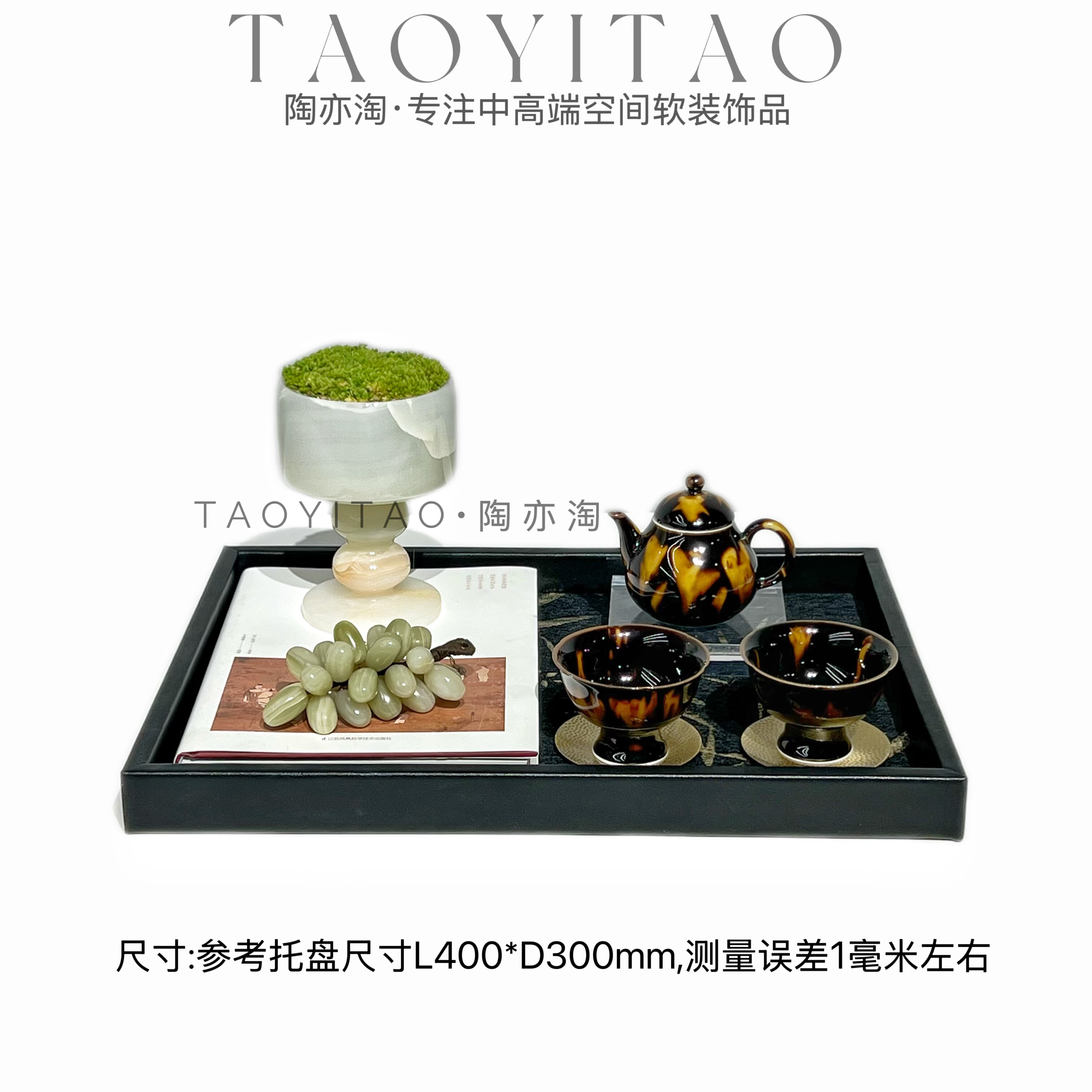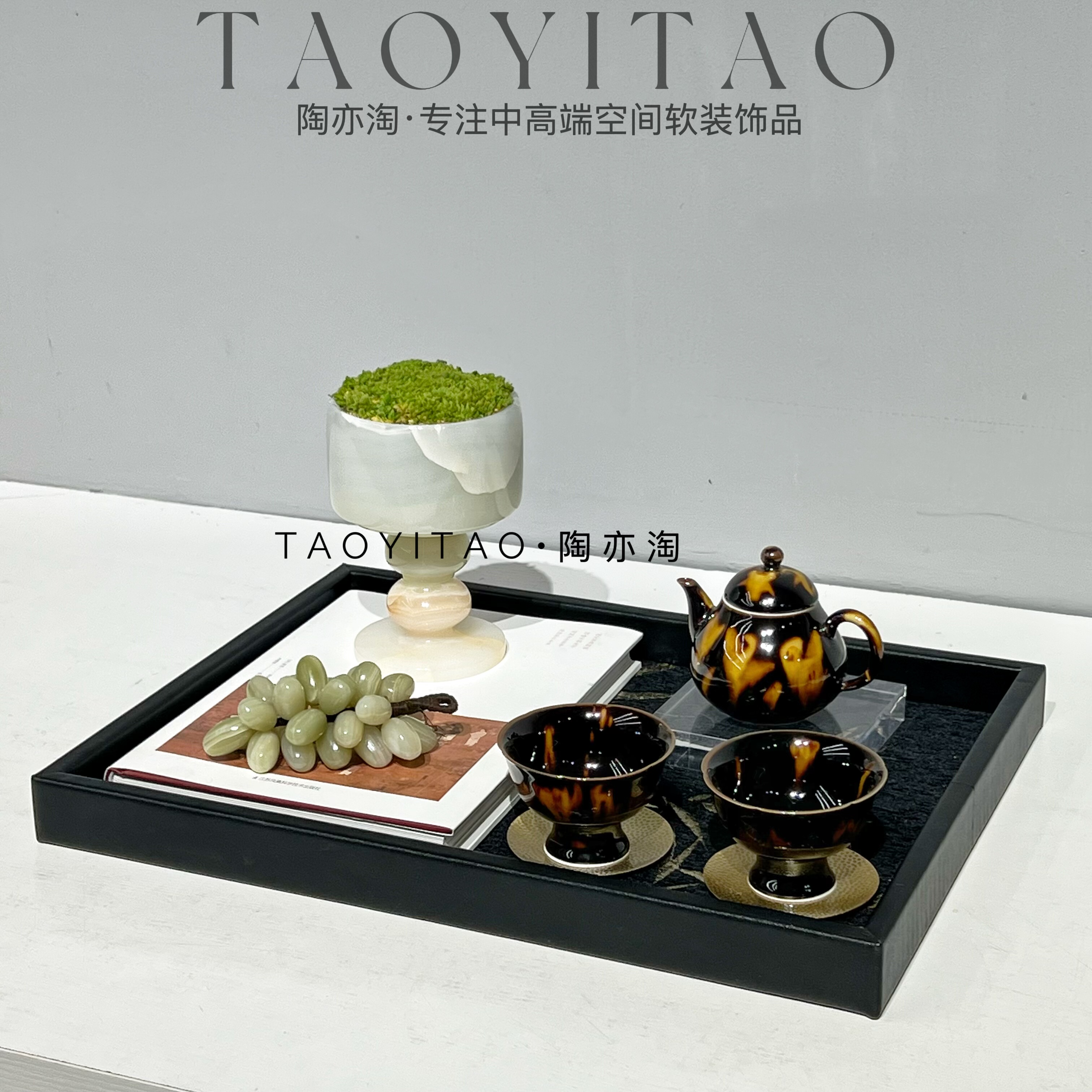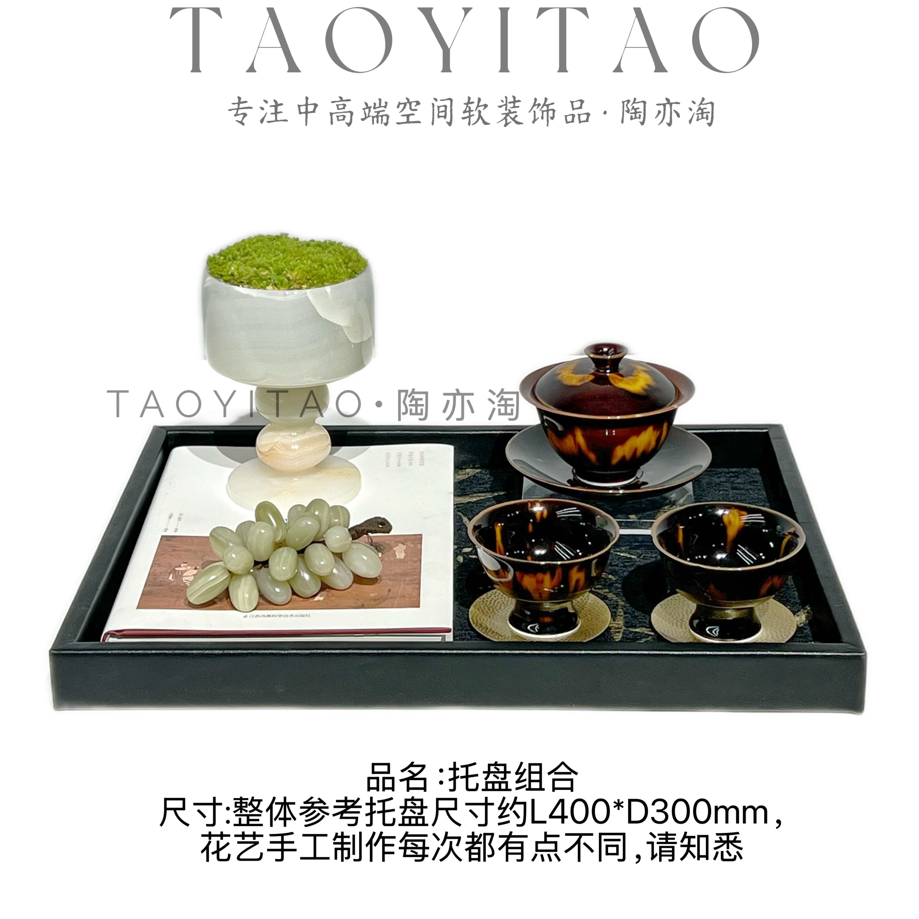 新中式古奢风茶几茶具托盘摆件套装样板间售楼处客厅桌面摆件饰品
