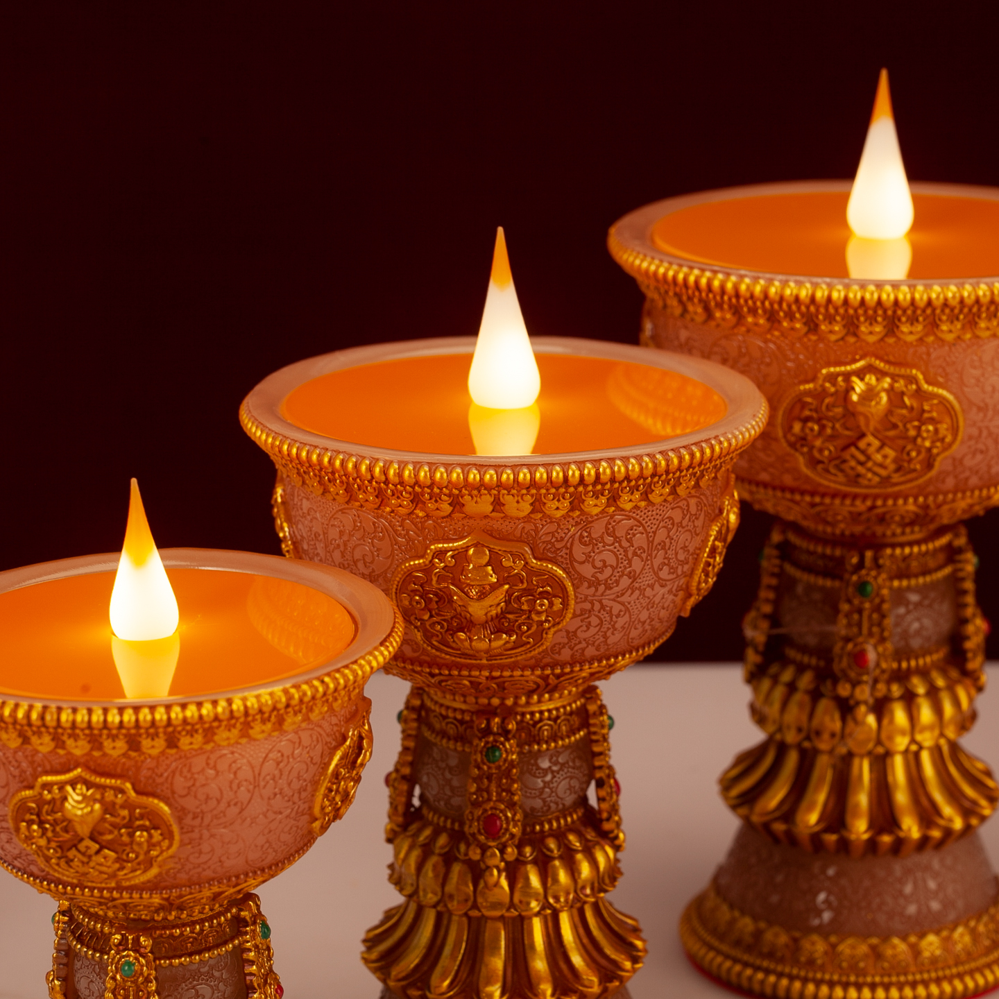 不闪烁电子酥油灯佛前供常亮LED长明仿玉树脂八吉祥充插家用摆件