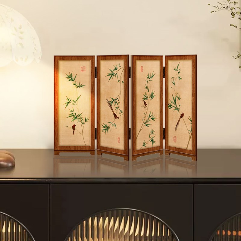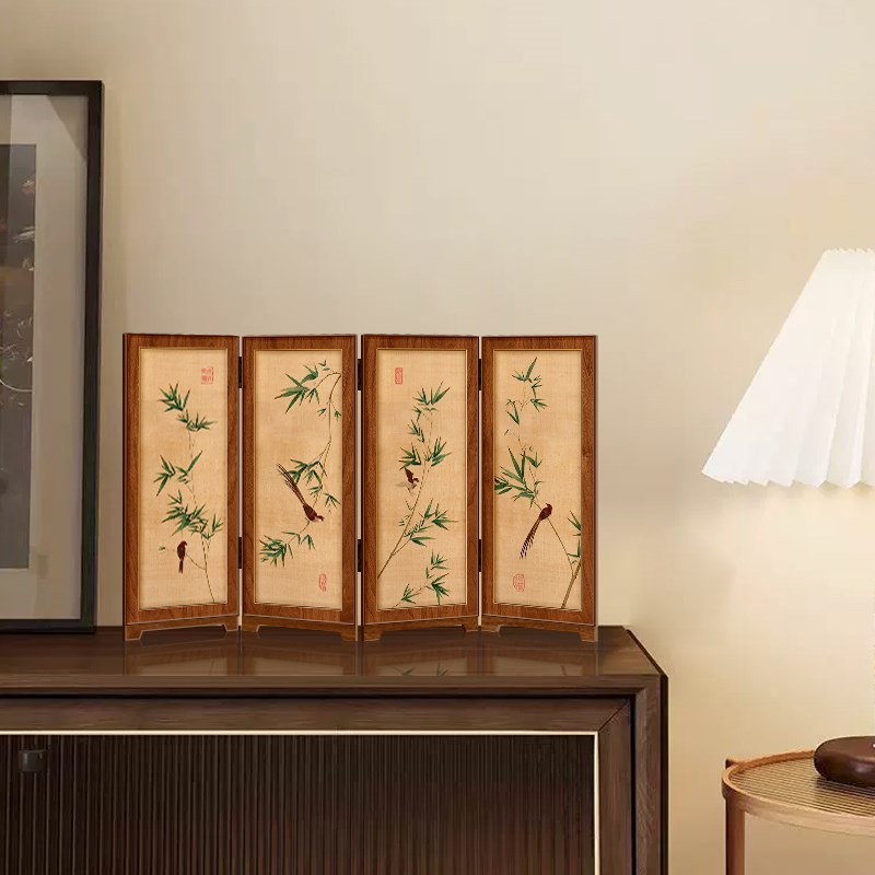 翠竹桌面小屏风摆件新中式茶室书房餐边柜摆台Q画中古风餐厅装饰
