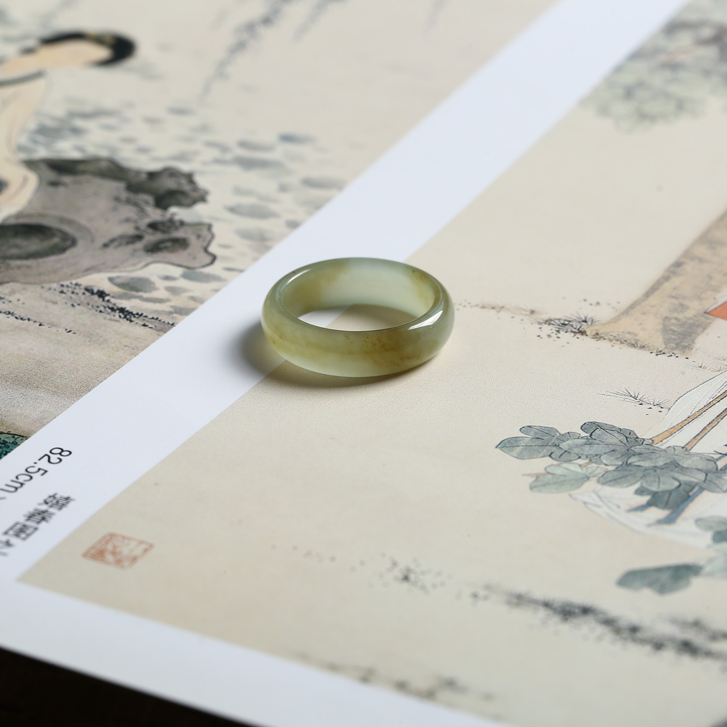 12号戒指 新疆和田玉糖料糖玉泥鳅背圆弧素圈指环 438