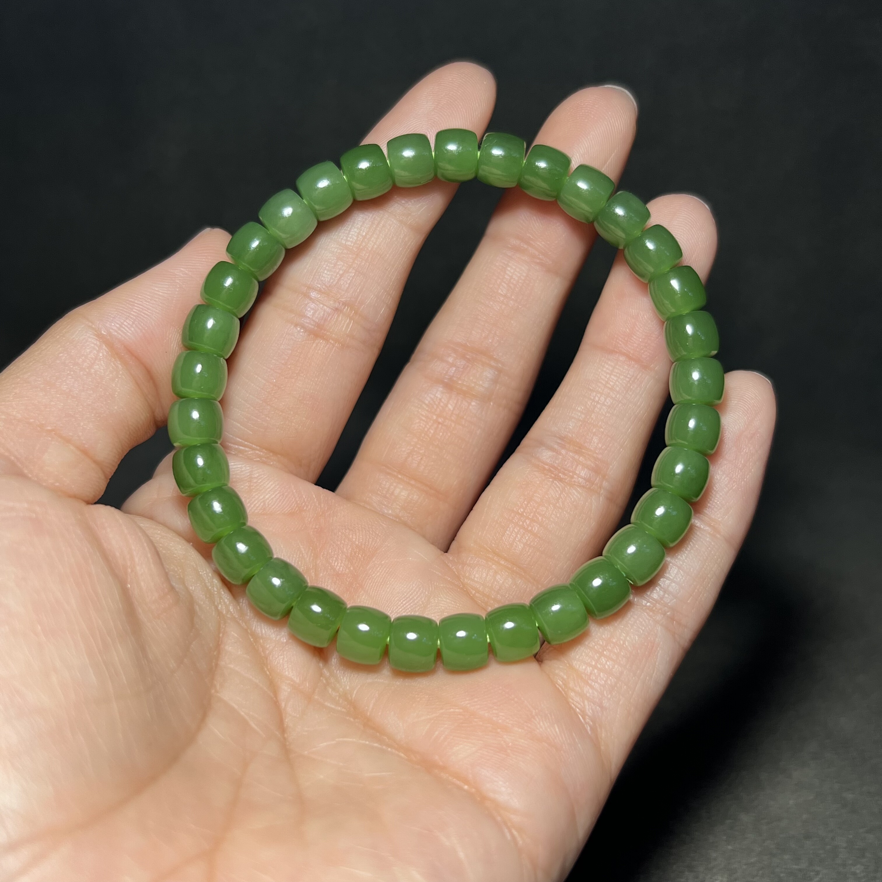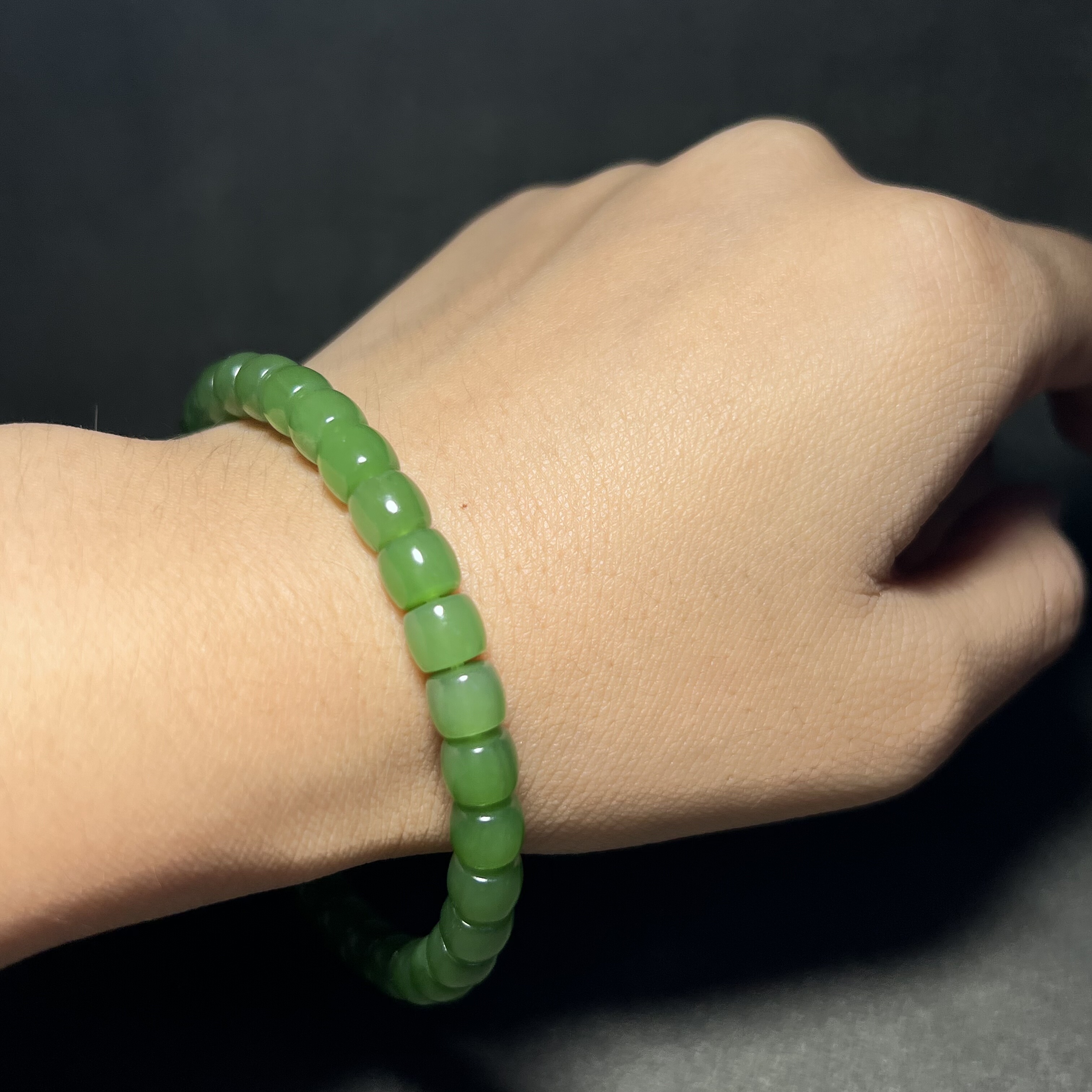 和田玉碧玉菠菜绿颜色亮气直切手串颜色均匀油润细腻过灯无暇重19