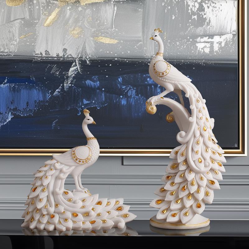 轻奢孔雀装饰摆件客厅桌面电视柜玄关装饰品新中式复合砂岩工艺品