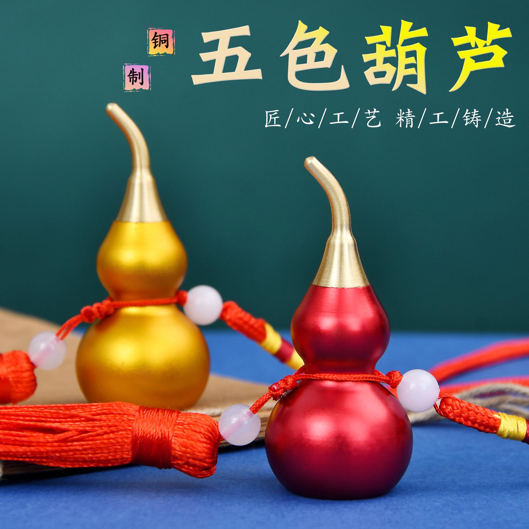 五行平衡铜葫芦挂件黄铜开 盖五帝钱门对门增补金木水火土家居挂