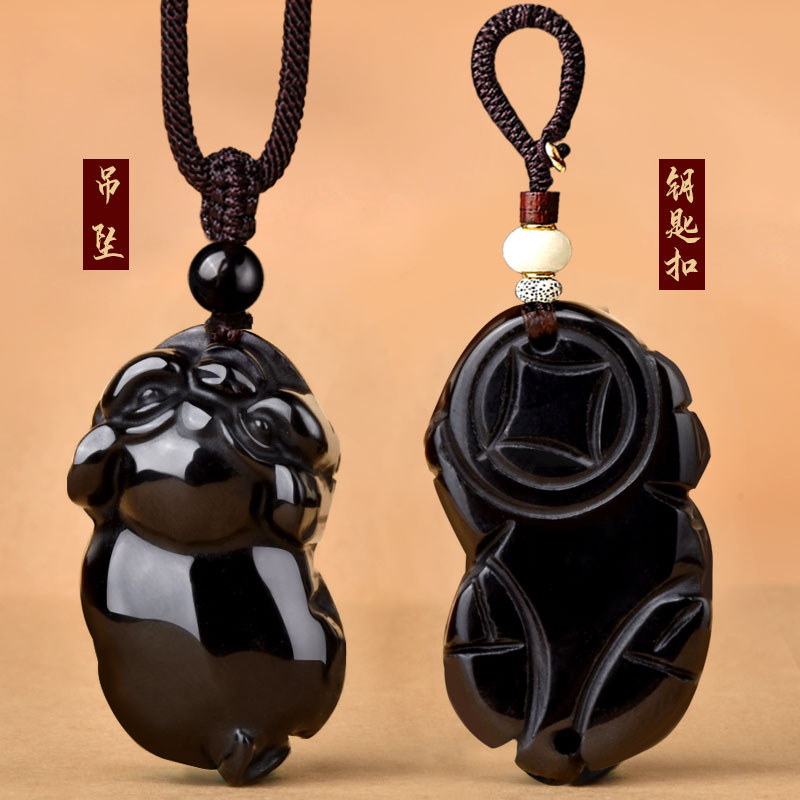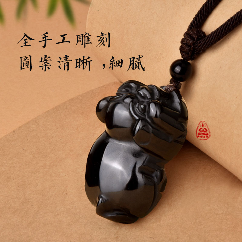 天然黑曜石猪吊坠十二生肖立体可爱黑色小猪项链挂件男女礼物饰品