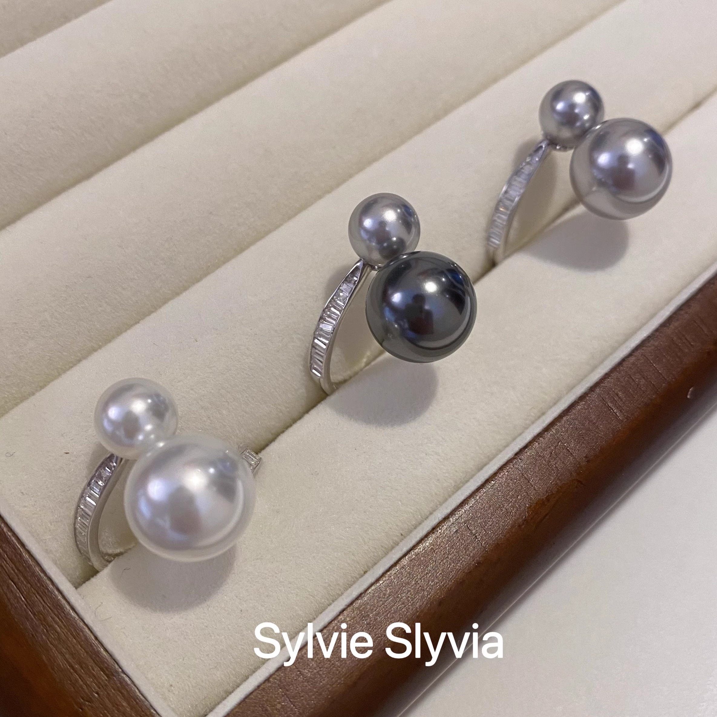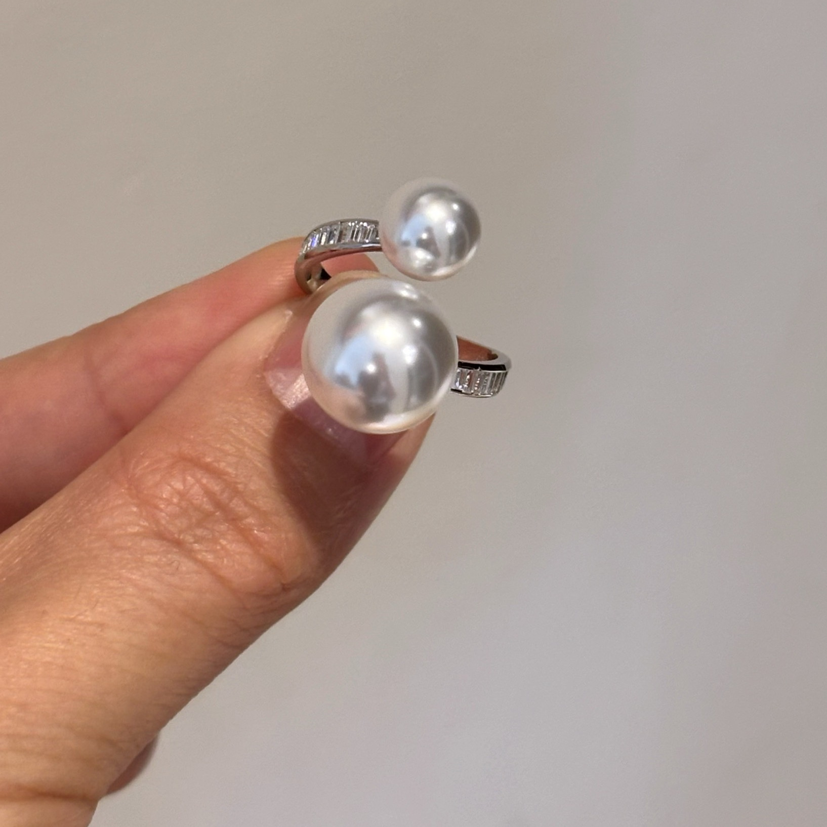 倪妮同款大小珍珠戒指纯银不掉色轻奢小众施家大溪地珍珠食指戒女