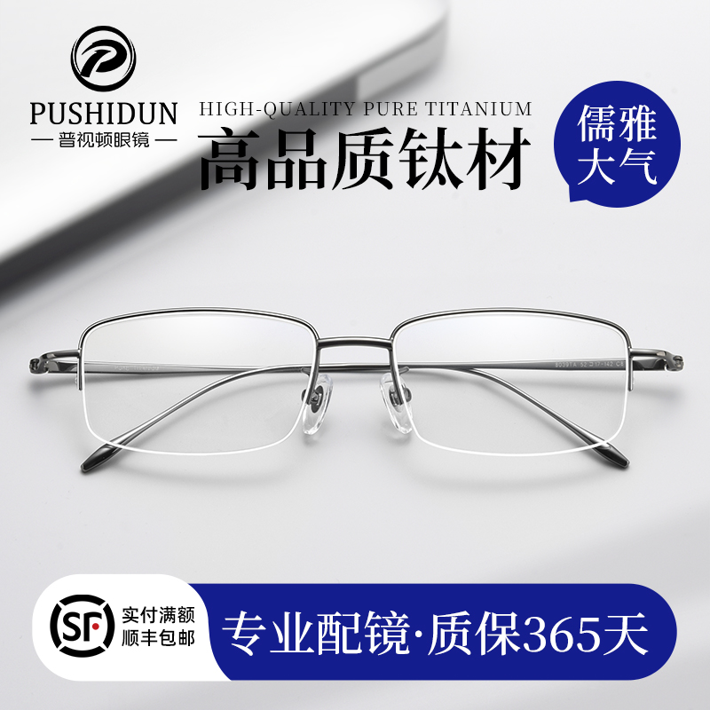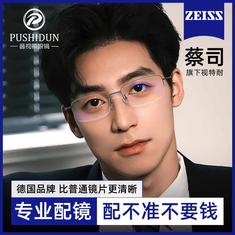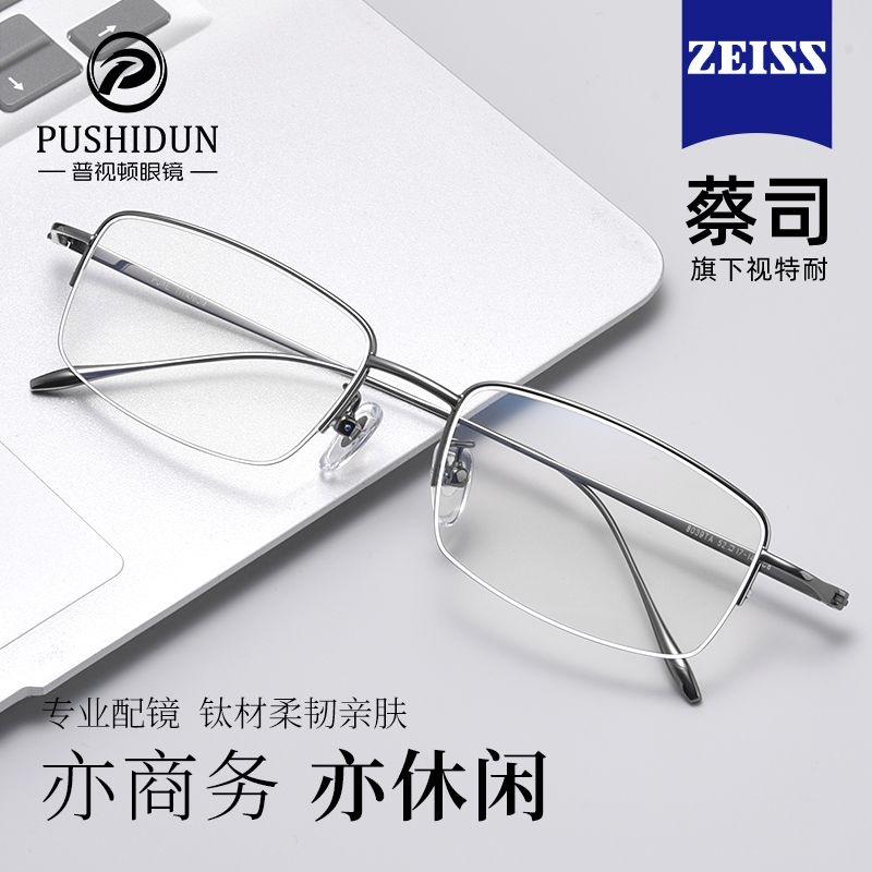 蔡司商务半框近视眼镜框男款可配度数镜片超轻纯钛防蓝光眼睛镜架