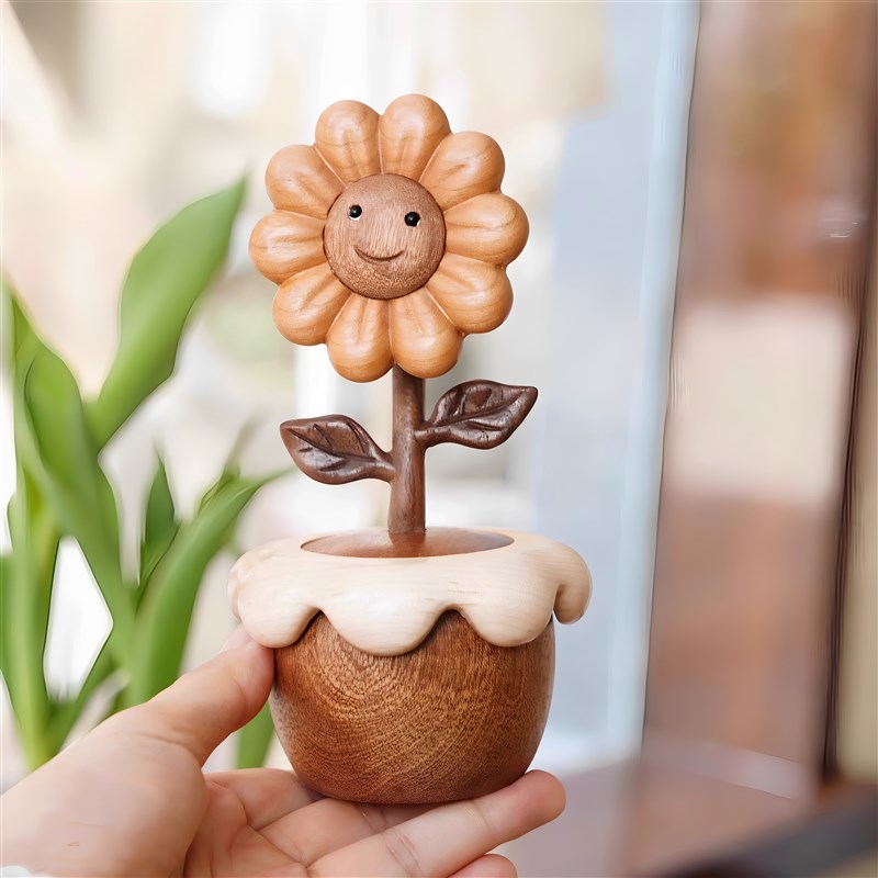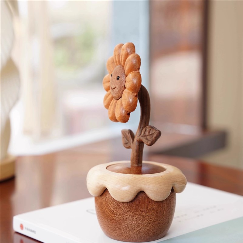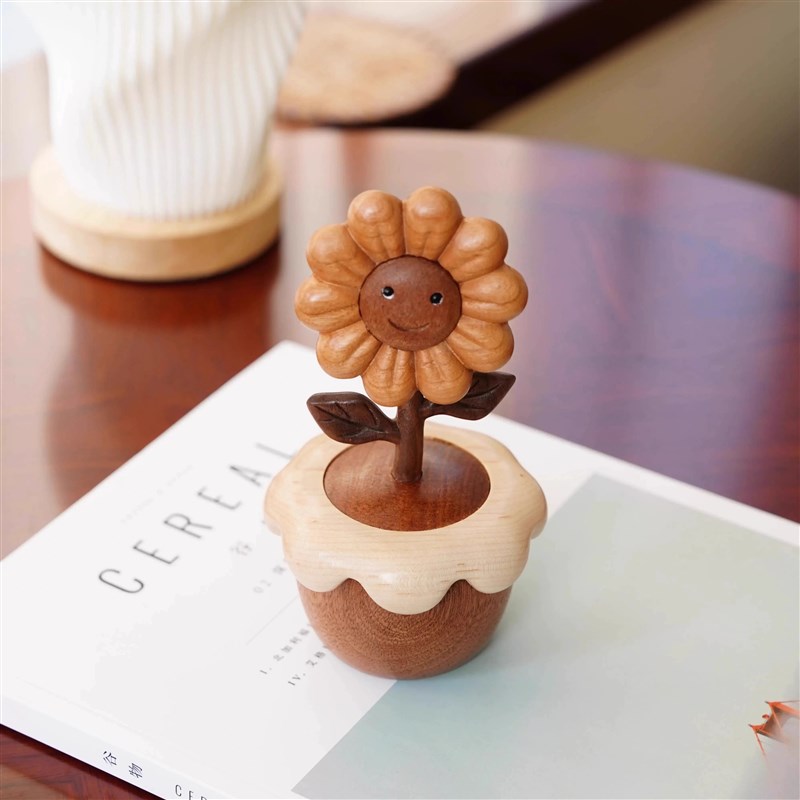 小花花音乐盒创意木制玩偶可爱治愈礼物办公桌面家居装饰摆件治愈