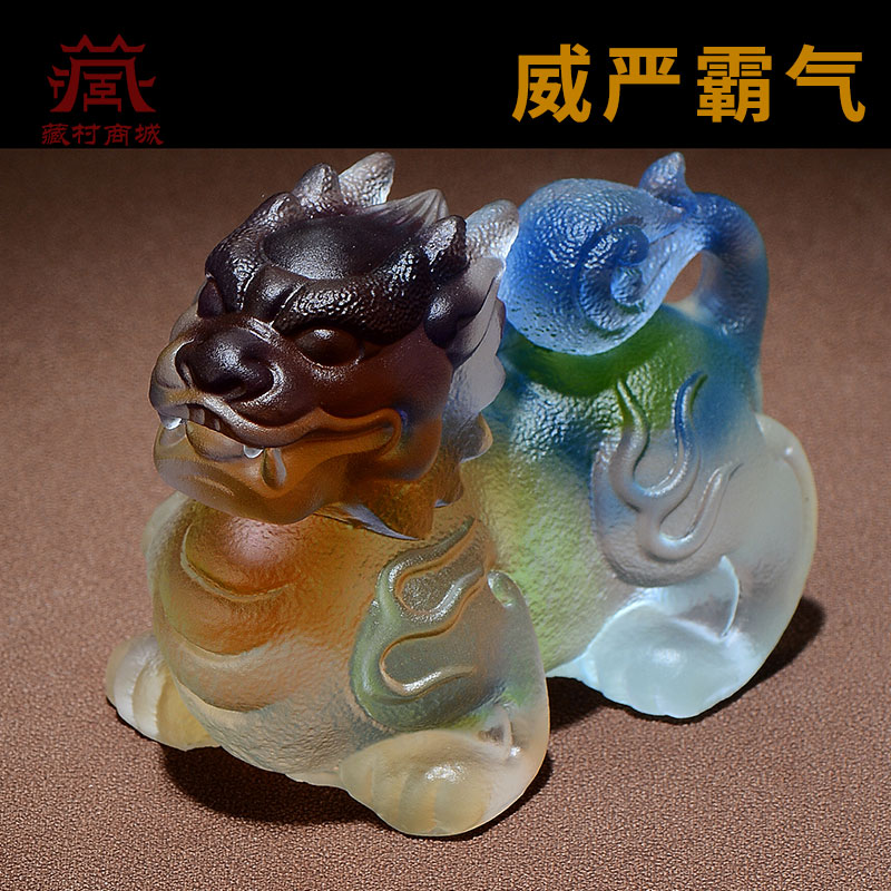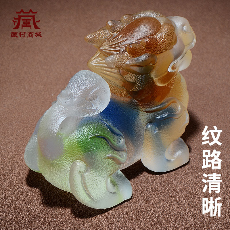 藏村琉璃貔貅摆件一对招财开业礼物办公室客厅水晶工艺品装饰