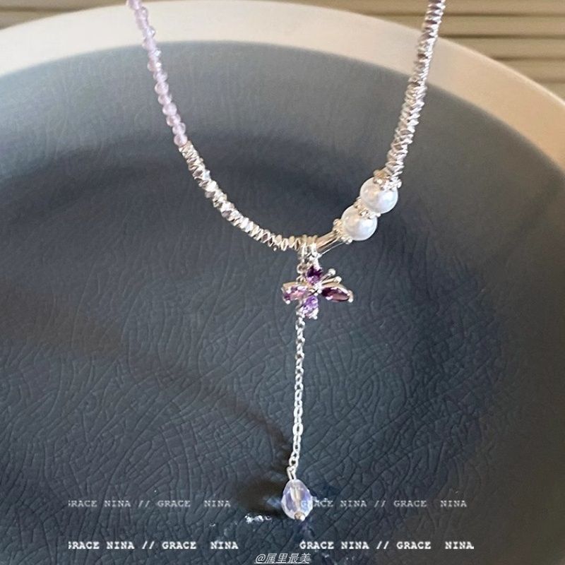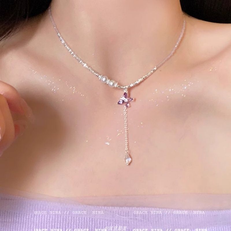 与春同频!紫色蝴蝶碎银流苏项链女轻奢小众高级感锁骨链春天配饰