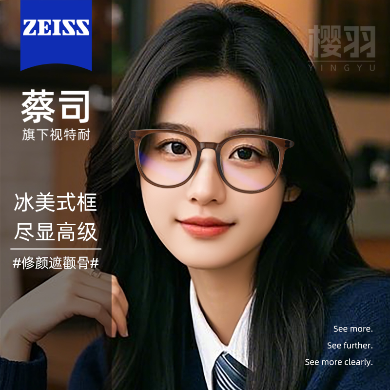 冰美式超轻近视眼镜女款大框方圆脸专业网上配镜平光素颜眼镜框架