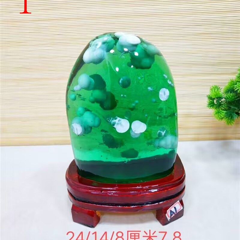 天然奇石水晶琉璃天然观赏石绿色原石玄关客厅家居装饰风水摆件