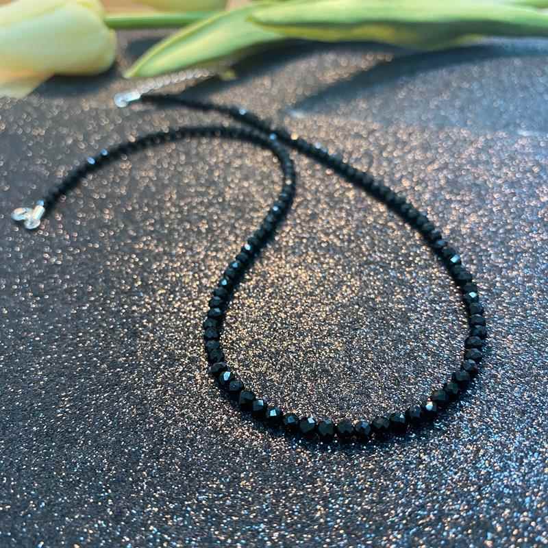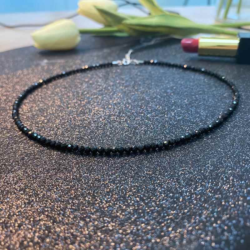 s925纯银黑色尖晶石项链女choker锁骨链短款项圈轻奢小众设计高级
