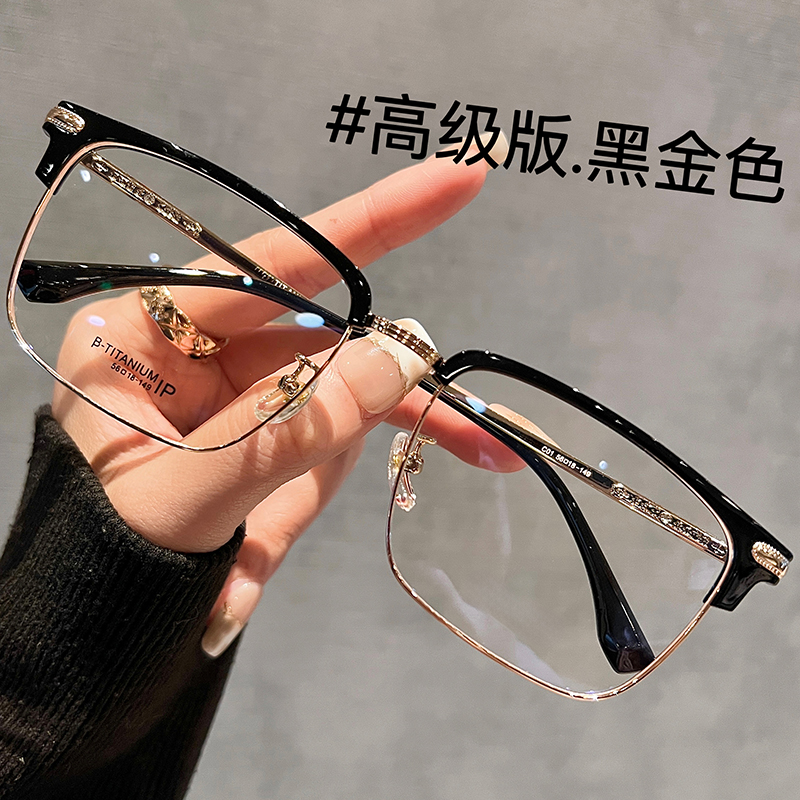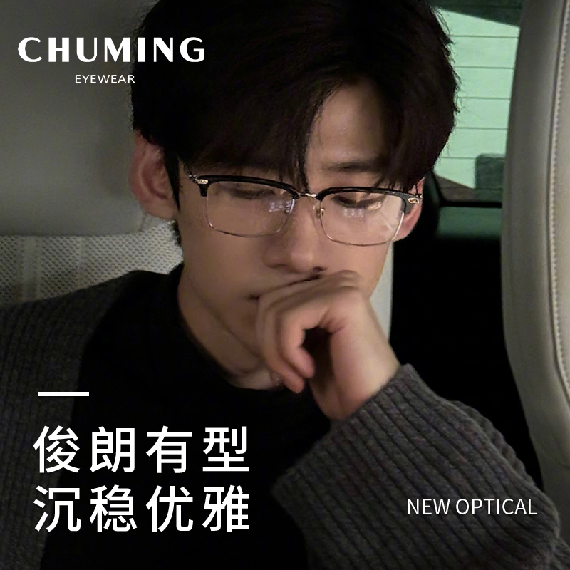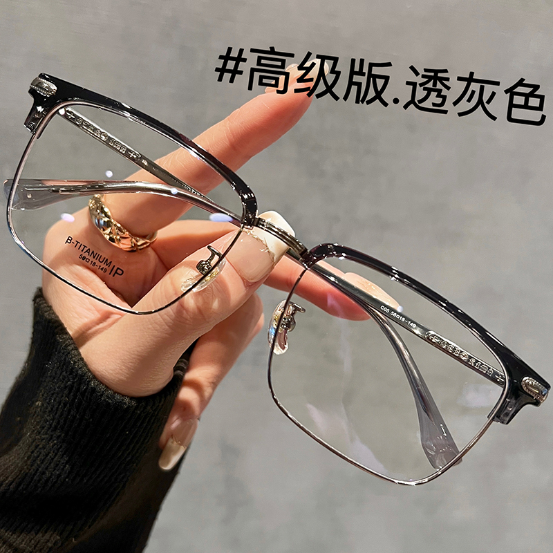 白敬亭同款斯文半框眼镜理工男近视可配有度数眉线眼睛超轻钛架男