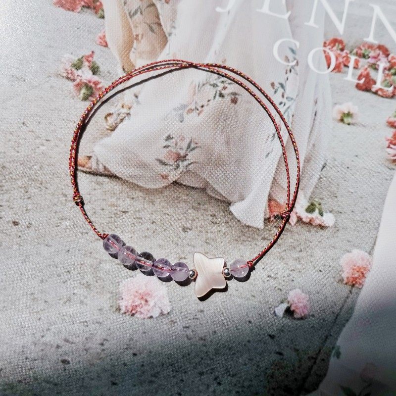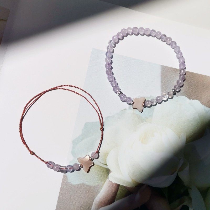 轻柔原创清新天然薰衣草紫水晶小众仙气蝴蝶细手绳女单圈文艺手串
