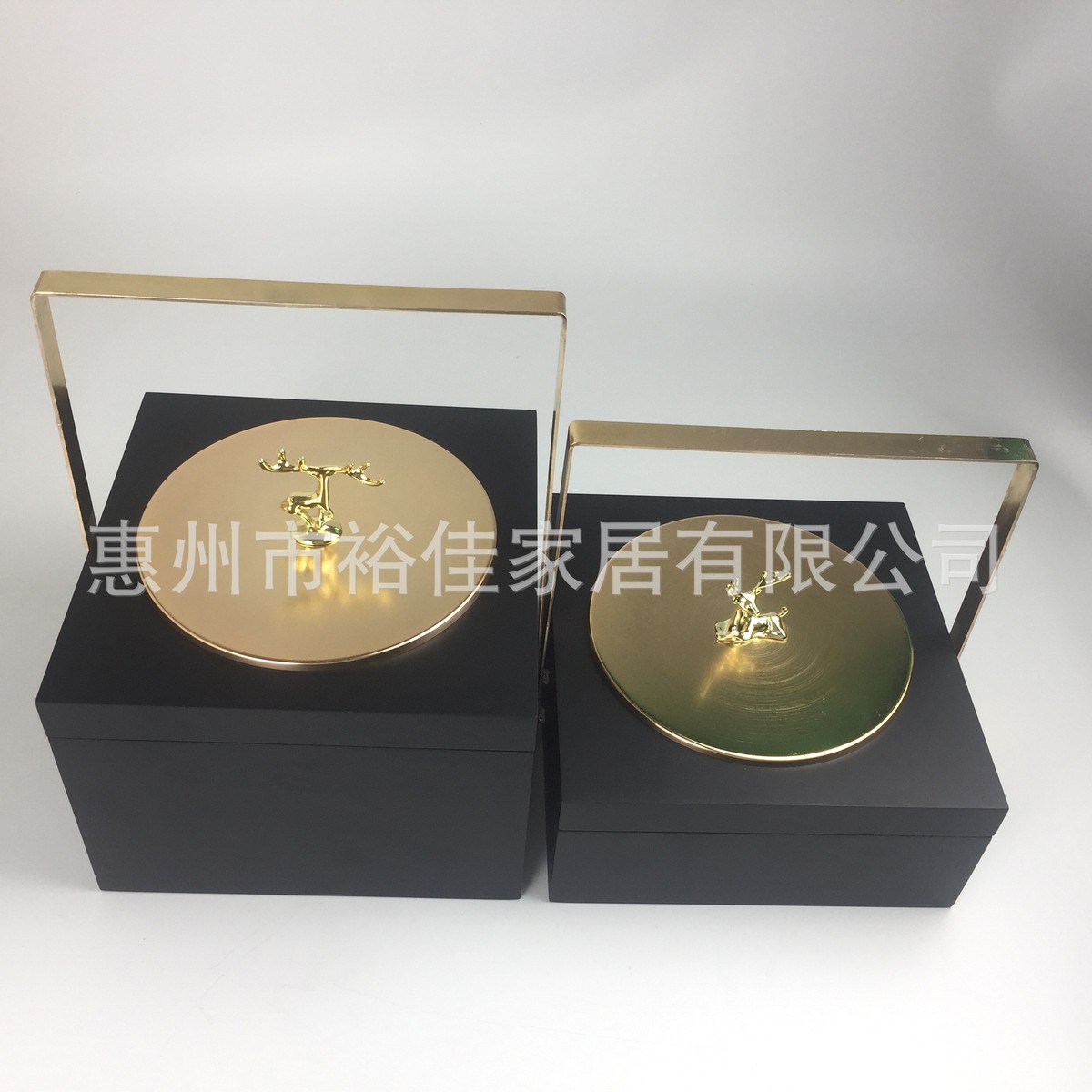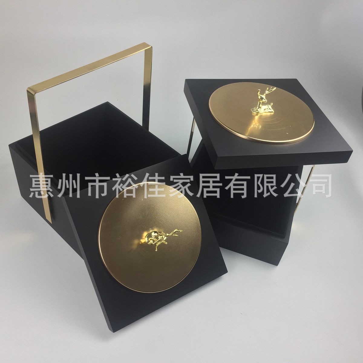 热销厂家新中式简约提篮储物盒家居黑色五金摆设样样板间收纳盒现