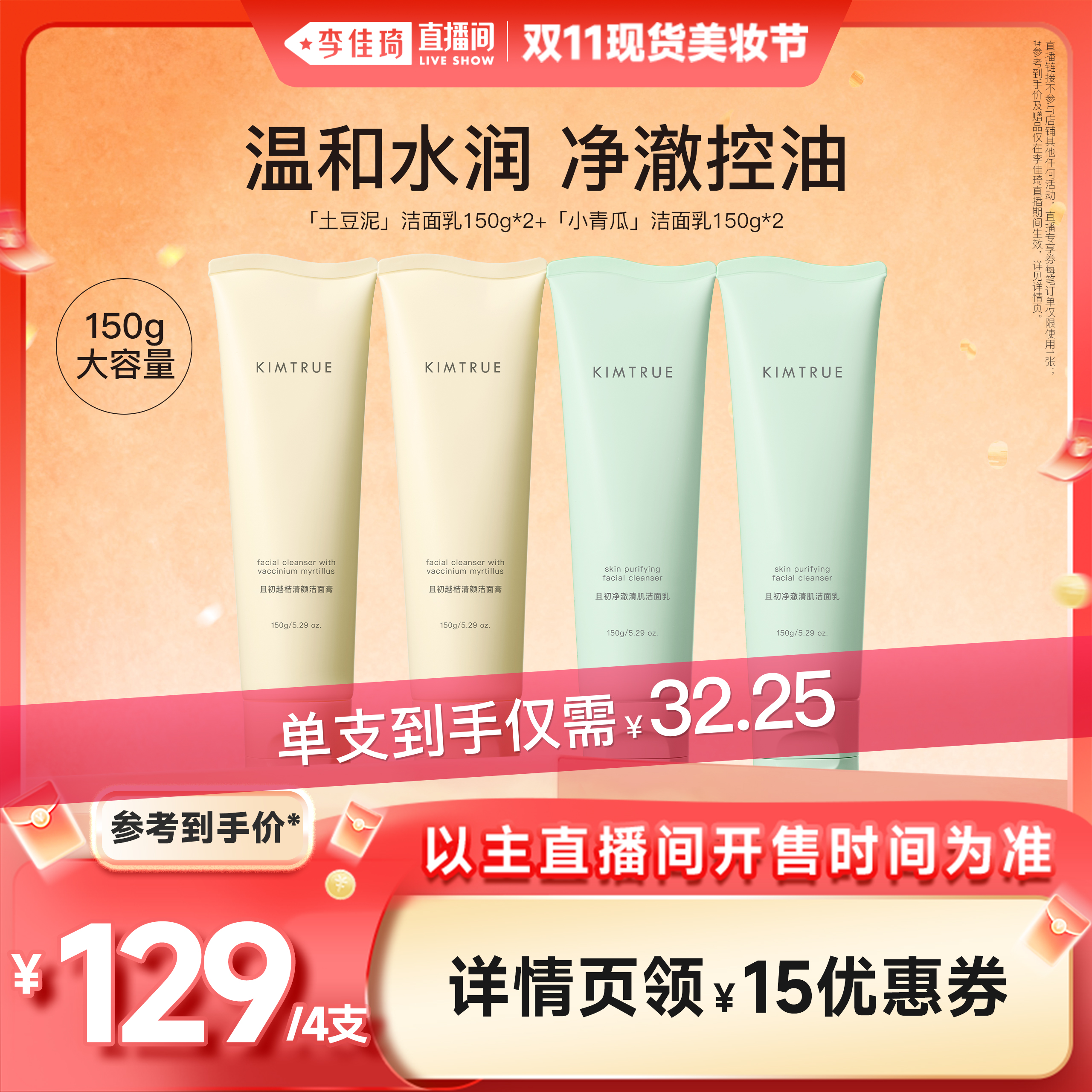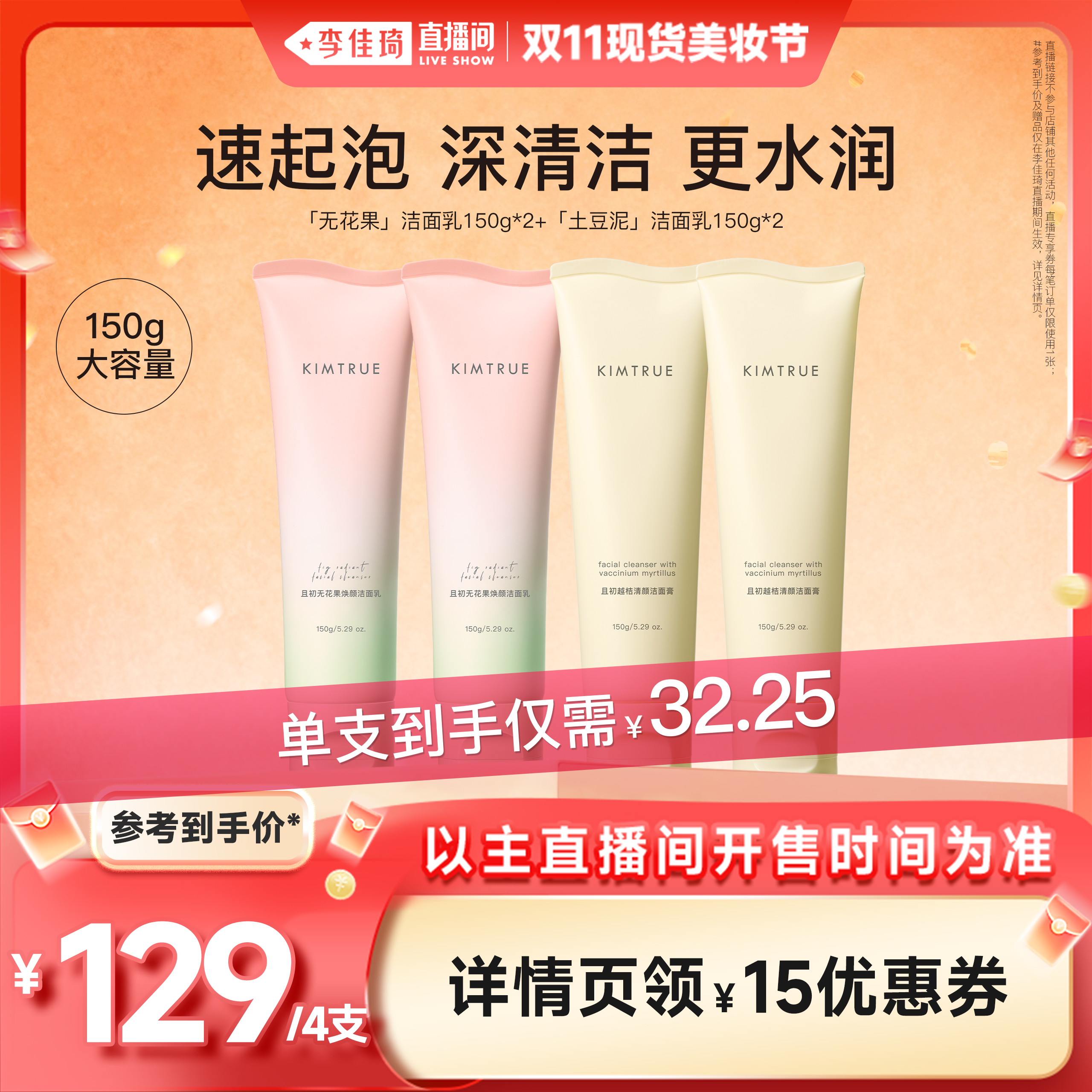【李佳琦直播间现货美妆节】KIMTRUE且初无花果洁面乳洗面奶