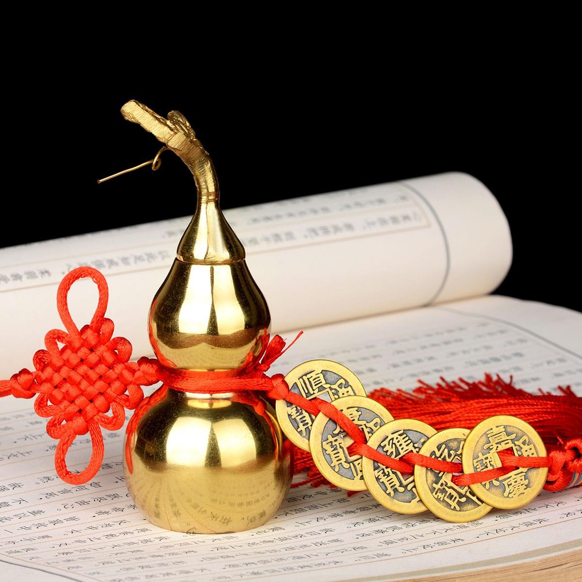 纯铜八卦开 盖开 口葫芦五帝钱挂件镜光面葫芦六帝钱家居饰品挂件