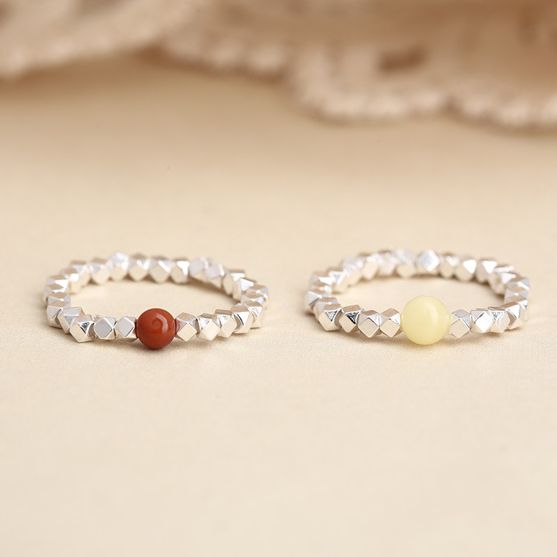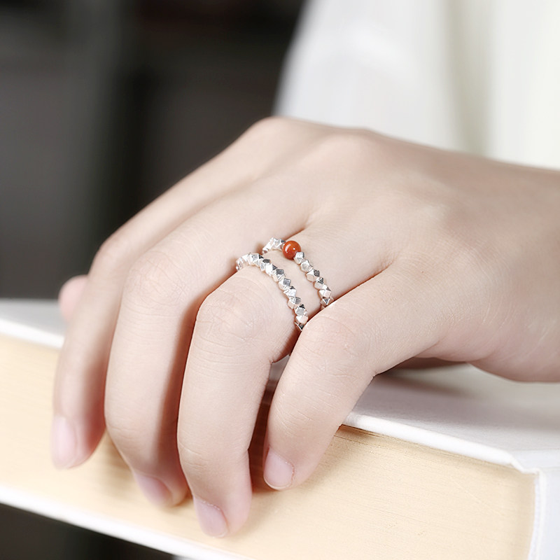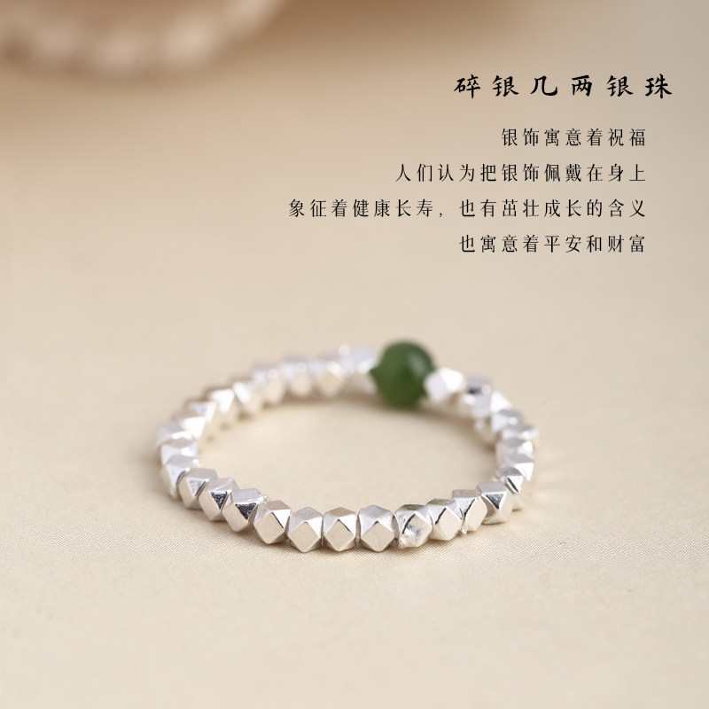 s925纯银碎银子戒指女轻奢小众设计碎银几两指环高级感素圈银饰