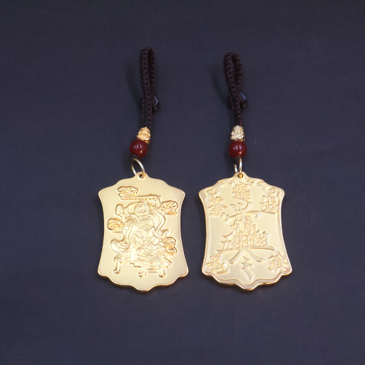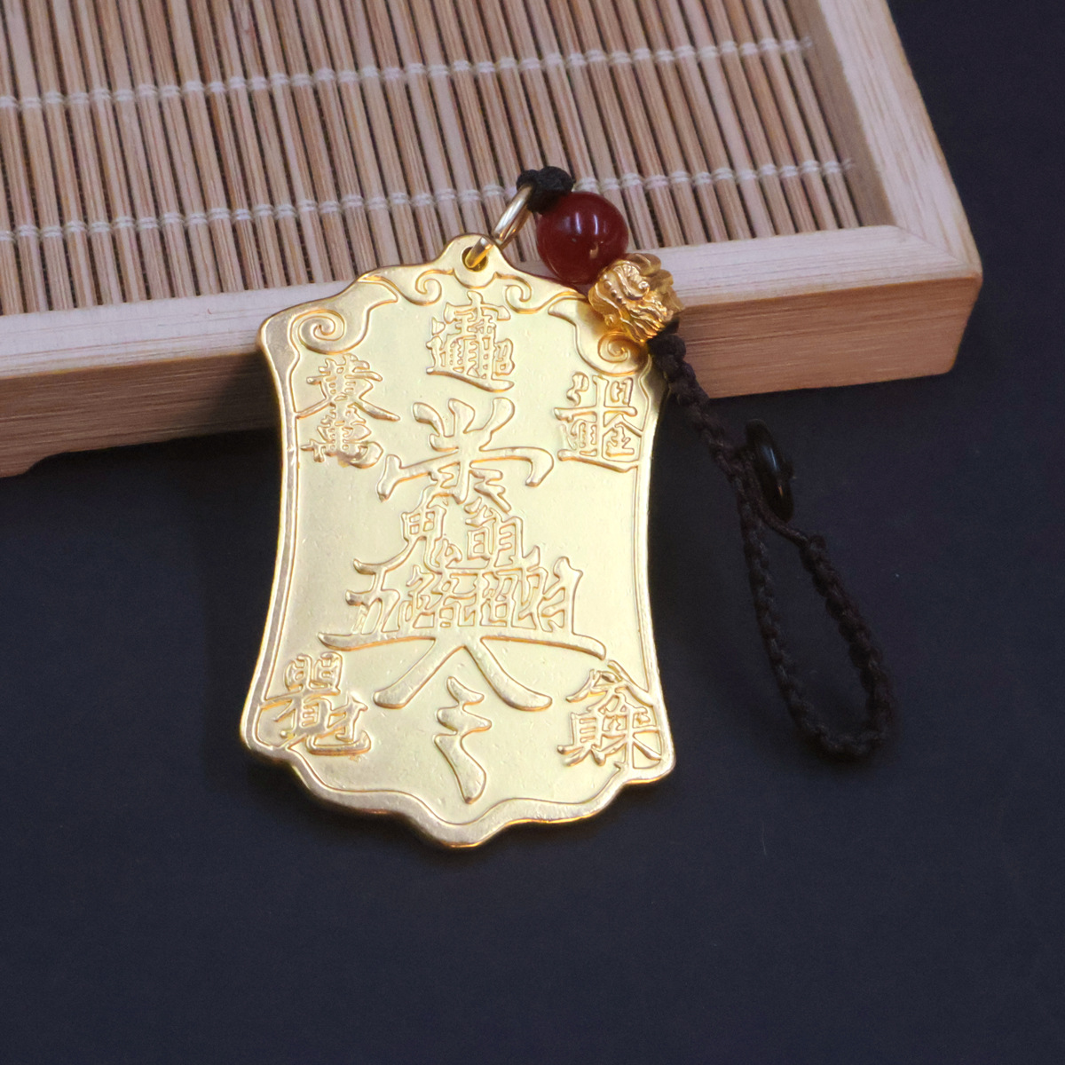 沙金五路财神招财令武财神赵公明吊坠招财令挂件纯黄铜汽车钥匙扣