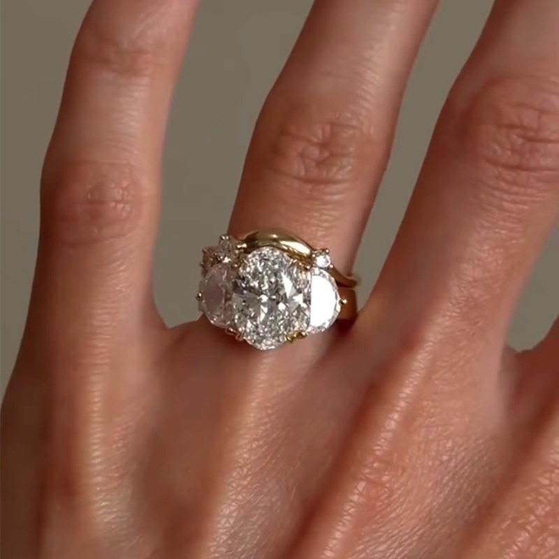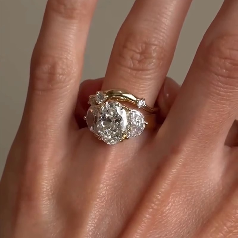 中古爆闪鸽子蛋戒指女小众设计轻奢高级感波浪点钻叠戴食指戒指环