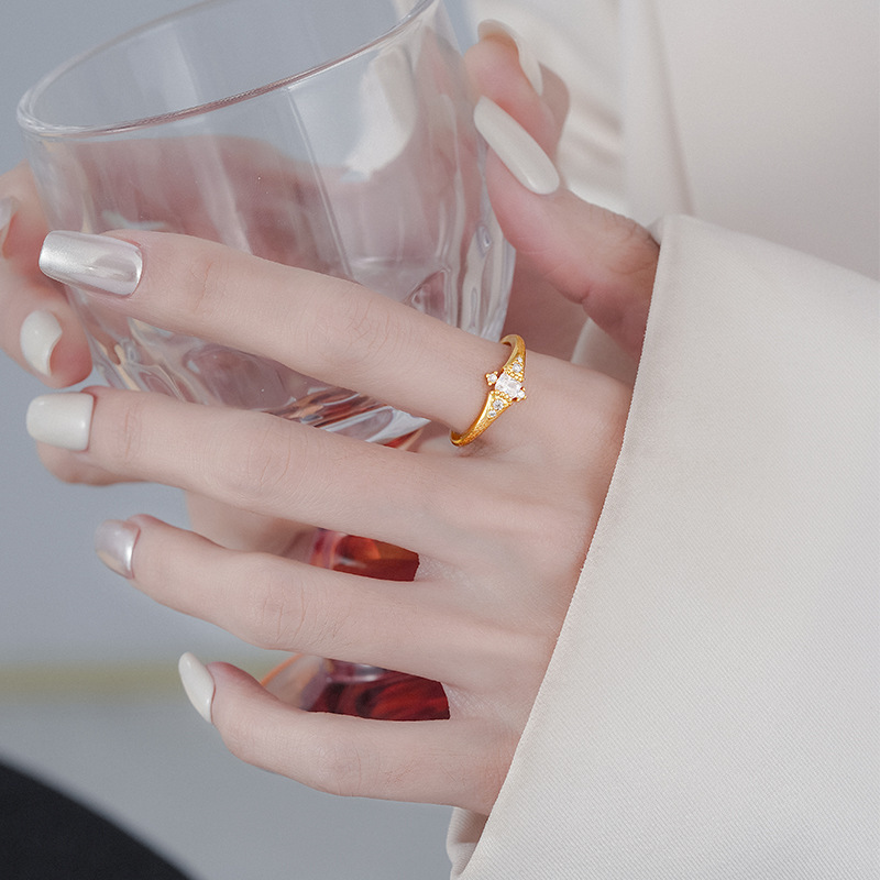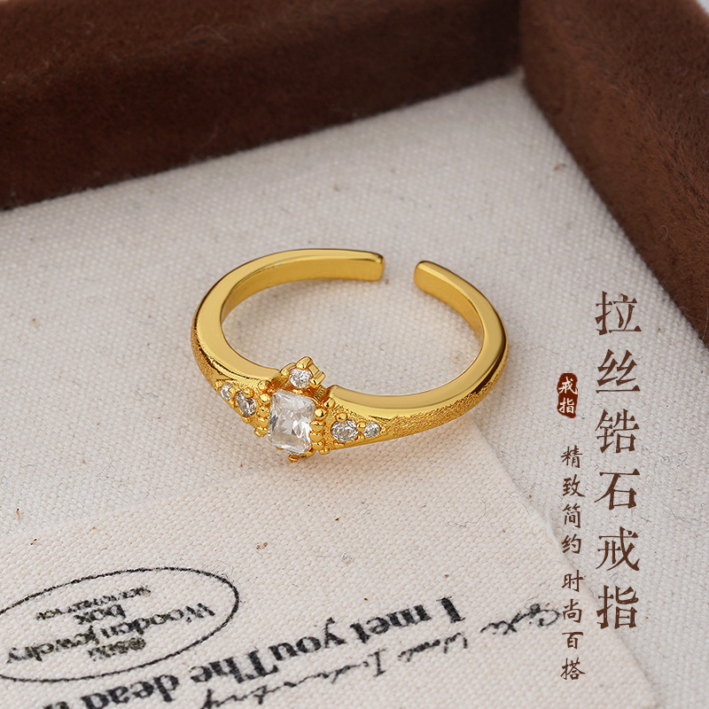 新款简约素圈拉丝锆石戒指设计感气质轻奢