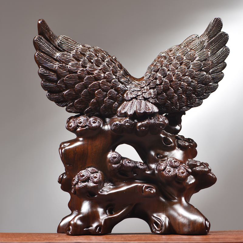 黑檀木雕老鹰摆件实木新中式大展宏图家居客厅办公商铺柜台装饰品