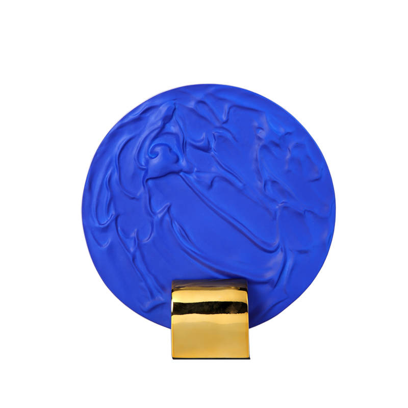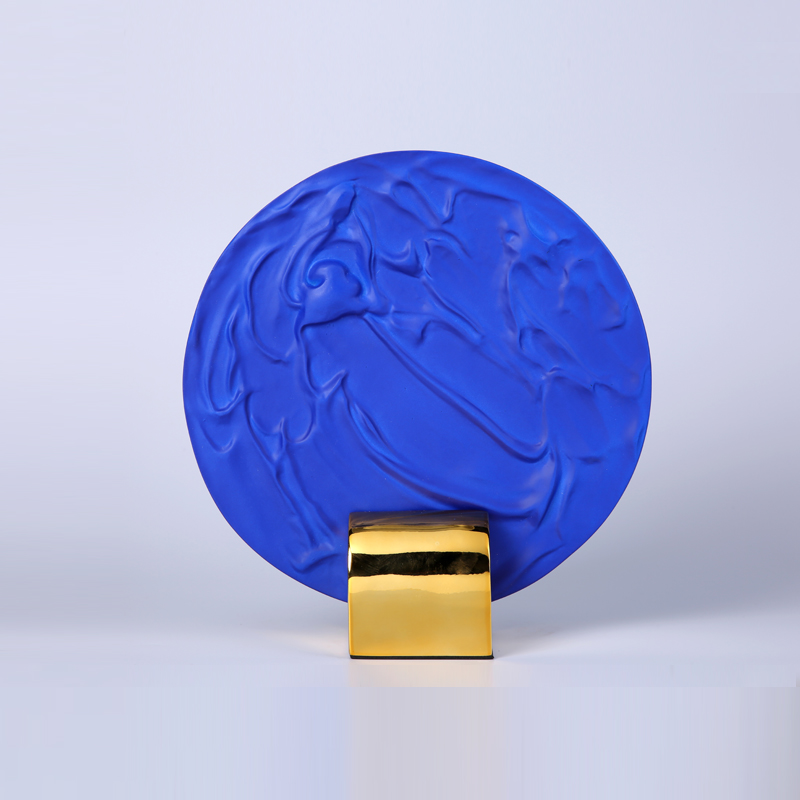现代极简约蓝色圆形屏风摆件新中式样板间玄关客厅办公室桌面装饰