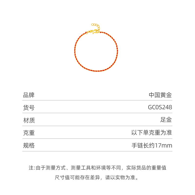 【中国黄金官方店】足金5G红绳手链时尚简约气质新品百搭首饰