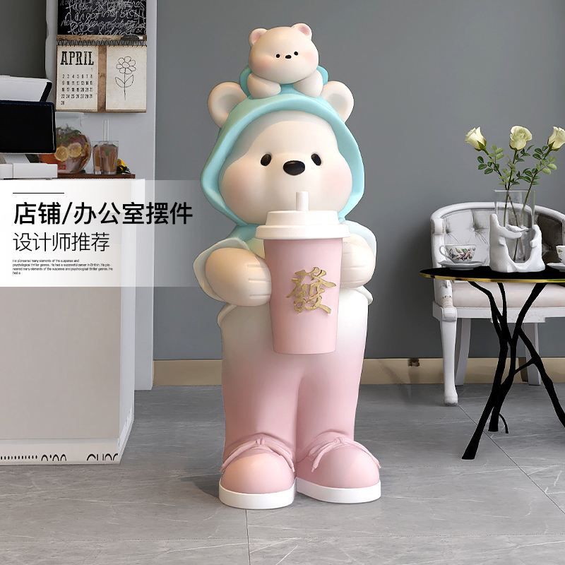 奶油风熊a公仔大型落地摆件商场奶茶店门口迎宾装饰品开业乔迁礼