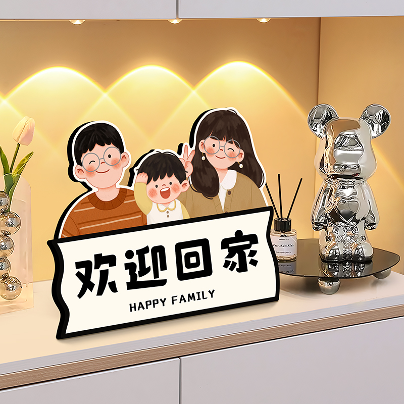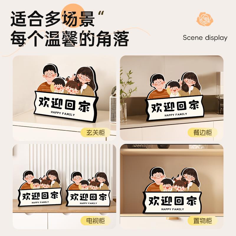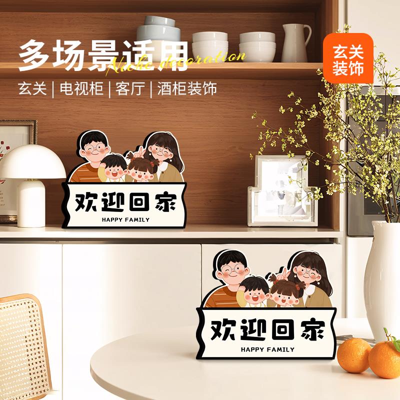一家三口四口摆件欢迎回家入户门玄关鞋柜装饰品摆画客厅桌面摆台