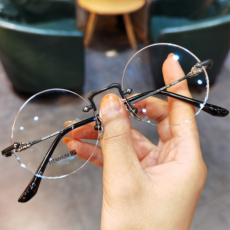 简丹新款超轻钛架圆框大框平光镜男女潮百搭素颜可配近视防蓝光