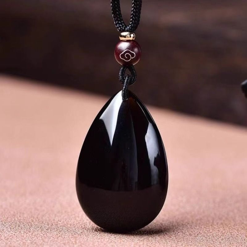 天然黑曜石水滴吊坠黑耀石黑色水晶挂坠挂件项链男士女款饰品七夕