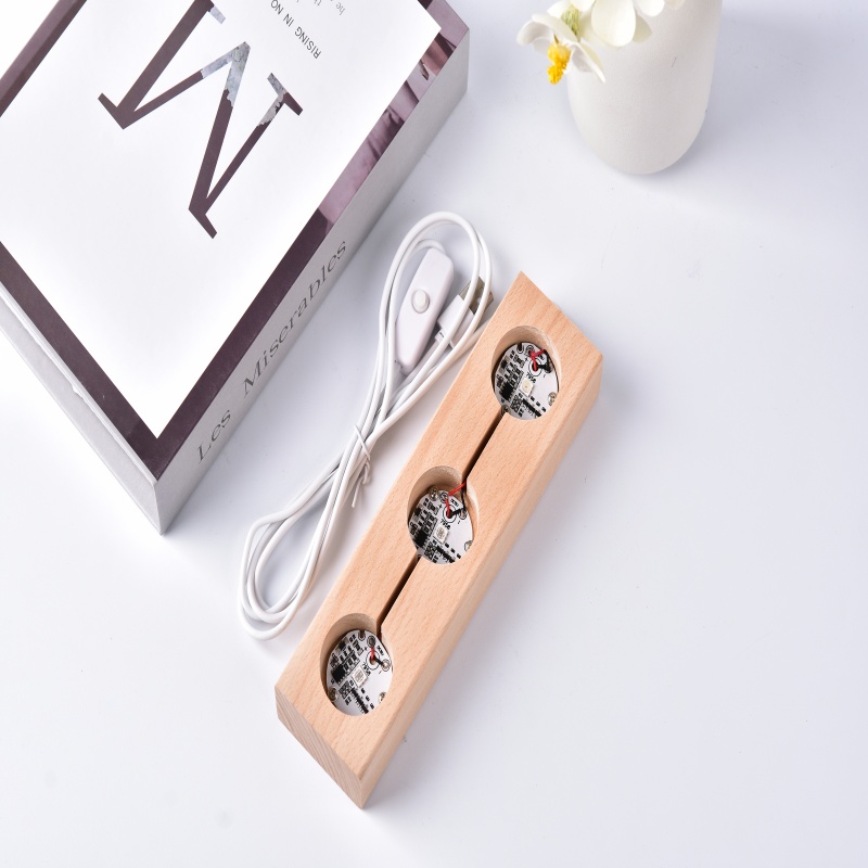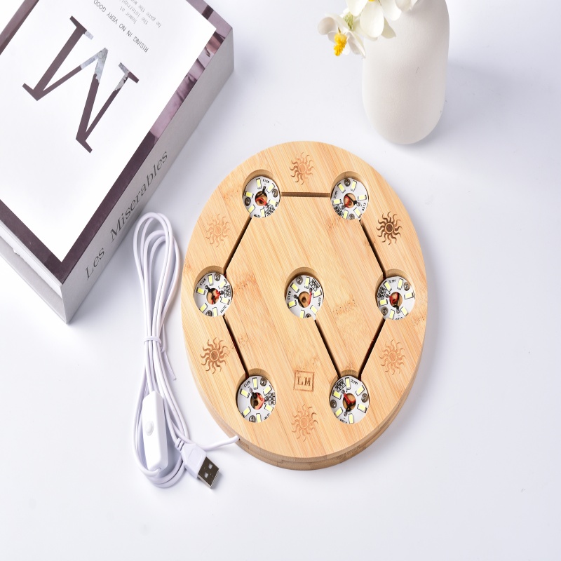 水晶球实木底座小夜灯LED展示商业摆设装饰七彩玉石USB发光底托架
