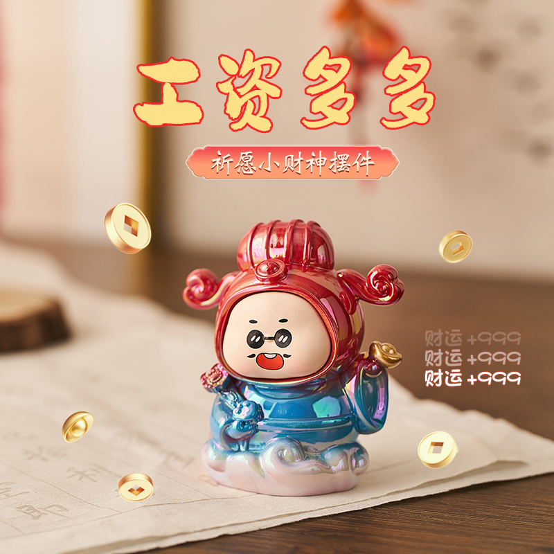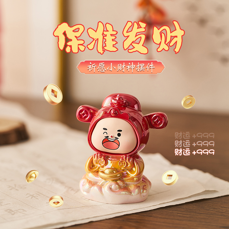 国潮小财神工位摆件招财发财创意可爱治愈系办公室桌面装饰品礼物
