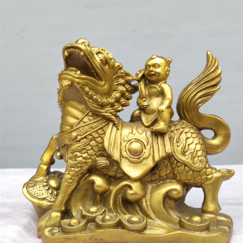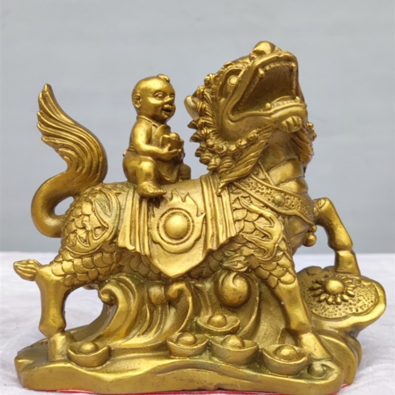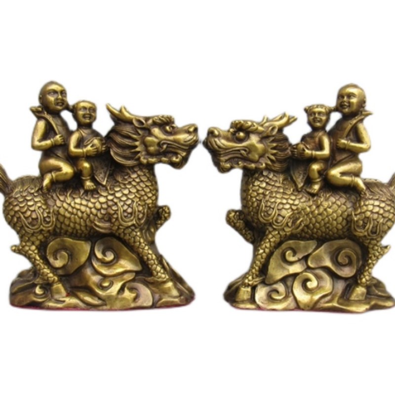 铜送子麒麟一对神兽o麒麟摆件童子童女如意麒麟招财家居中式桌面