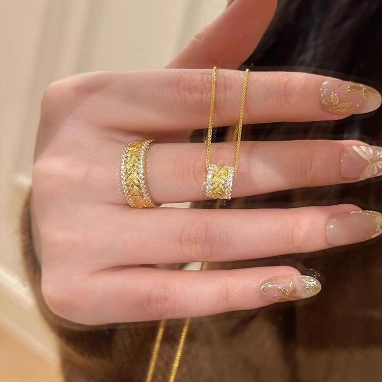 日本portney bells925银金色麦穗排钻项链中古风金枝玉叶轻奢