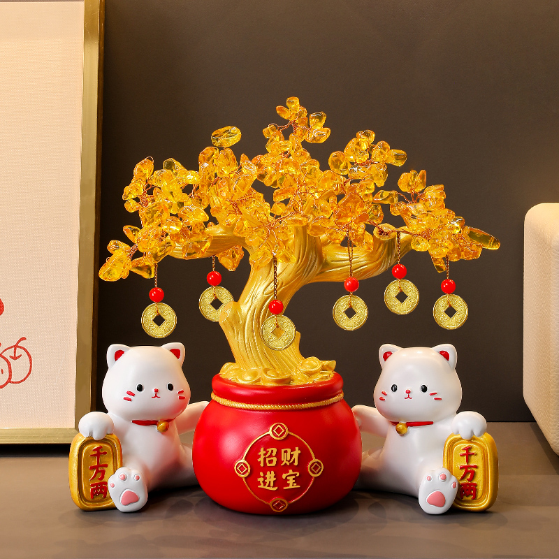 招财猫摆件开业礼物发财树家居客厅入户玄关前台收银台摆件礼物