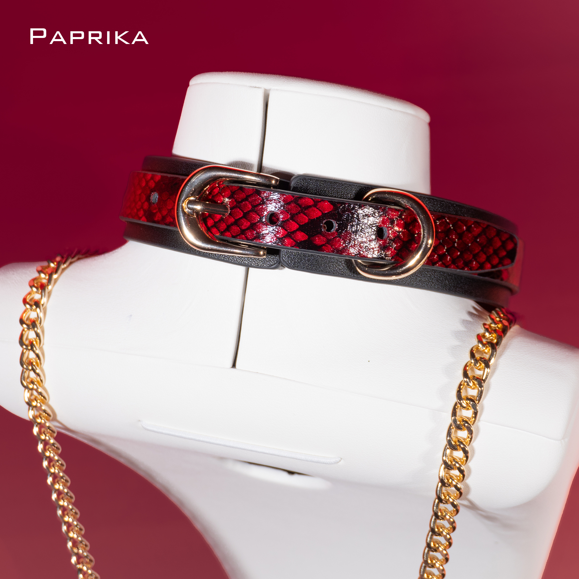 红色蛇纹项圈真皮choker手工手作项圈定制刻字加长