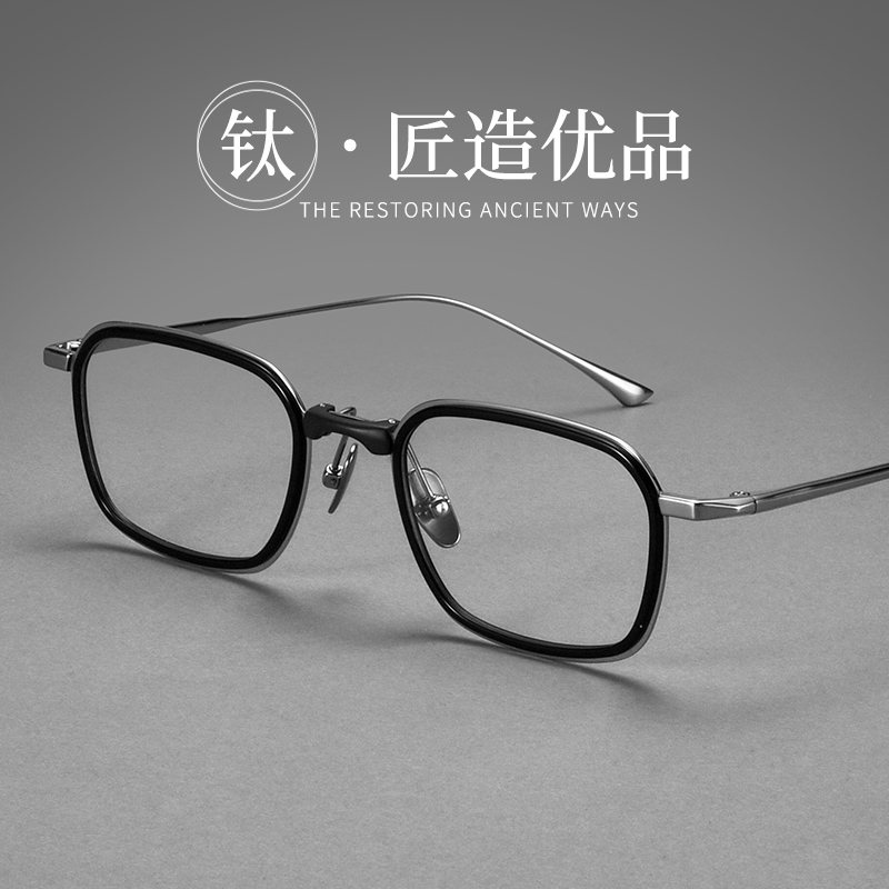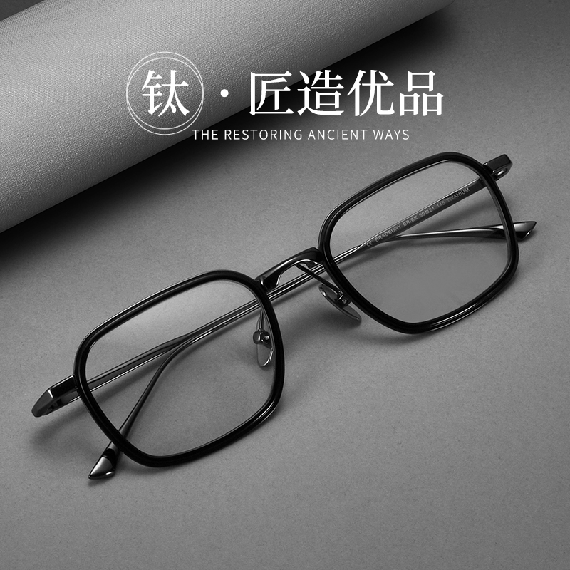 BARDBURY日本设计师款手作纯钛眼镜框男近视可配德国蔡司镜片度数