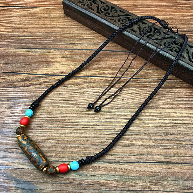 藏式玛瑙九眼天珠项链男士吊坠锁骨链女生毛衣链民族风挂件配饰品